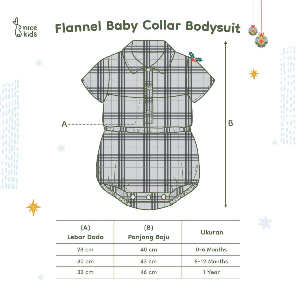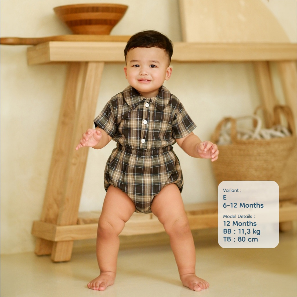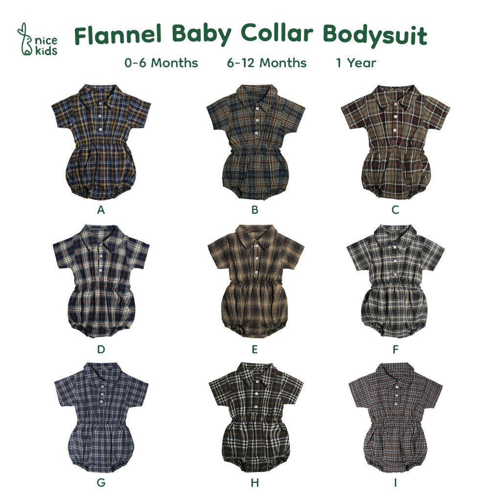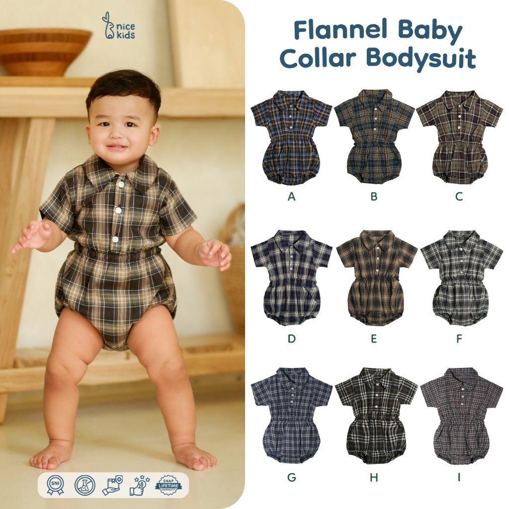 Nice Kids - Flannel Baby Collar Bodysuit Romper Kotak Bayi