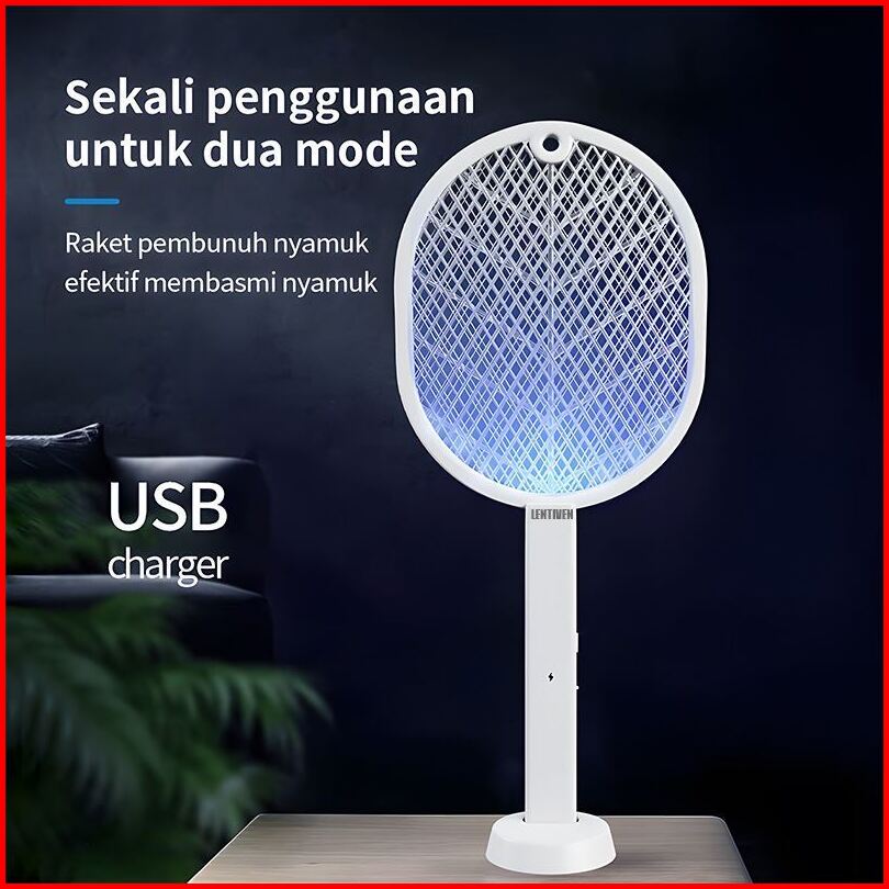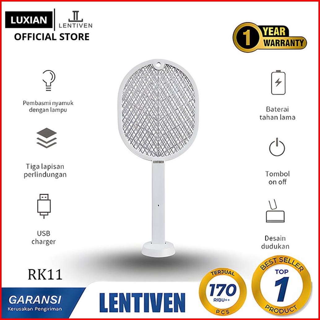 Luxian Lentiven Raket Nyamuk Elektrik Cas 2 In 1 Mosquito Killer Putih Dengan Basis Kabel Charger Rk11