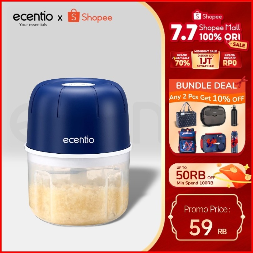 Ecentio Mini Chopper Blender 6 Pisau 250ml Portable Penggiling Bumbu Dapur Portable Penumbuk Bawang Biru Gelap