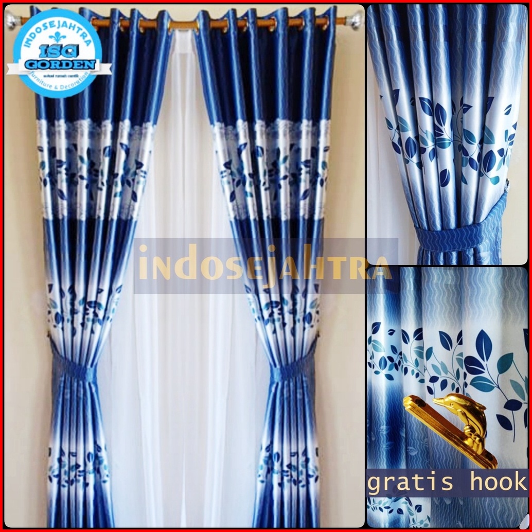 Gorden Pintu Kamar Tidur Aesthetic Blackout Import Printing Hijau Coklat Biru