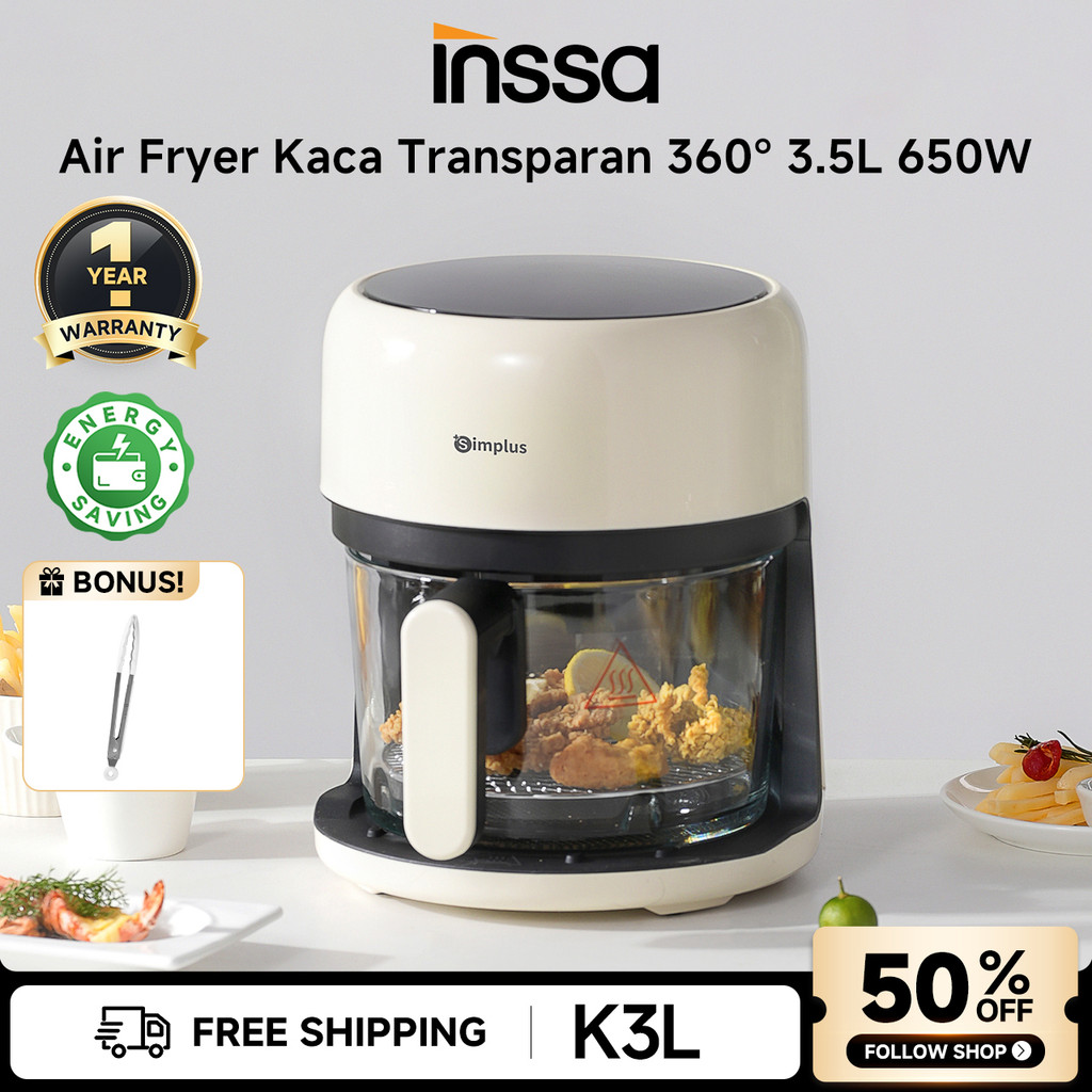 INSSA X Simplus Air Fryer Low Watt 650W 3.5L Digital Touch Screen Panoramic Glass 360 View