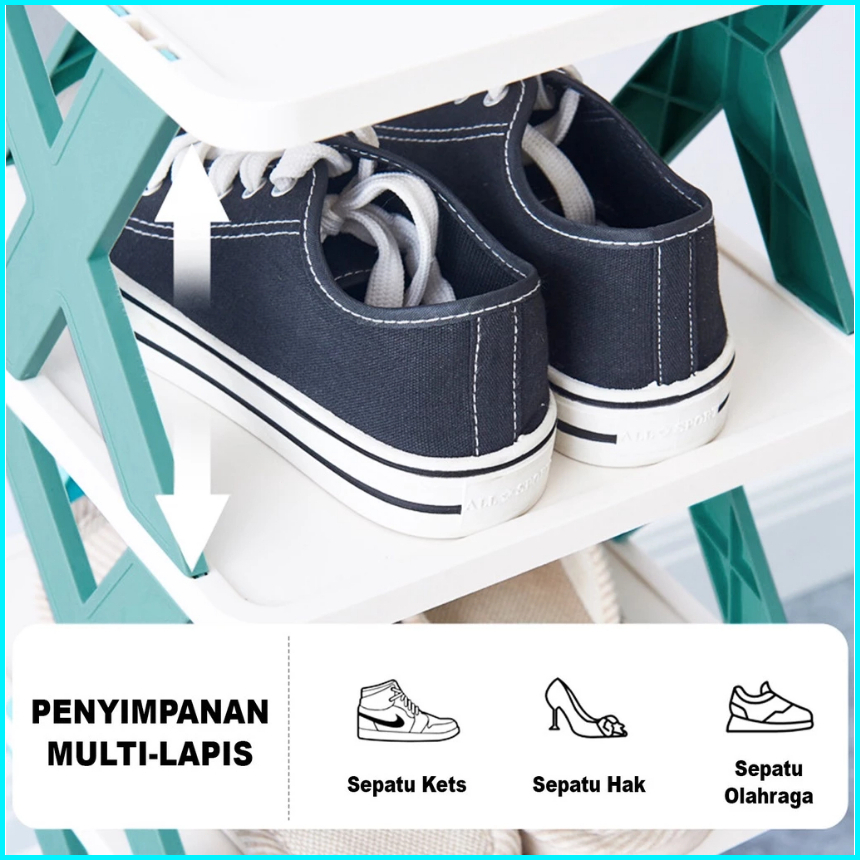 Rak Sepatu Plastik Minimalis 4 Susun Tempat Sepatu Sandal Serbaguna-hahahome
