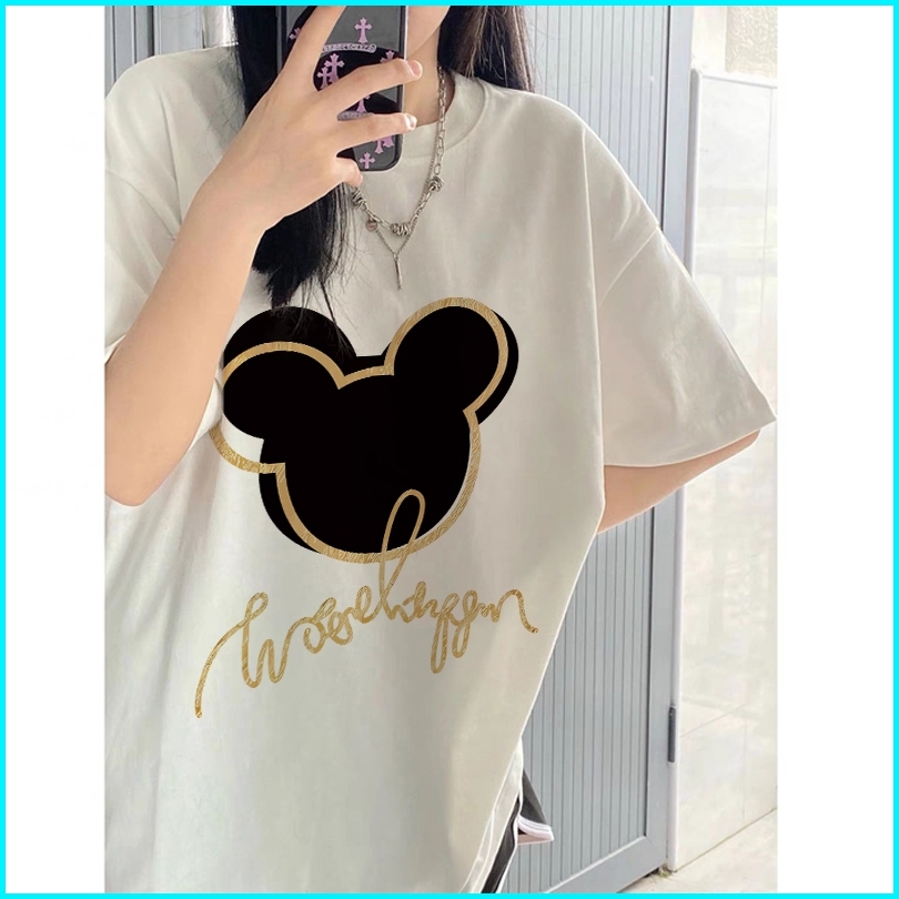 Sezo. Baju Wanita Mickey Mouse Kaos Bermotif Biru Baju Kaos Oversize Wanita Korean 100 Cotton Atasan Wanita Korea Style