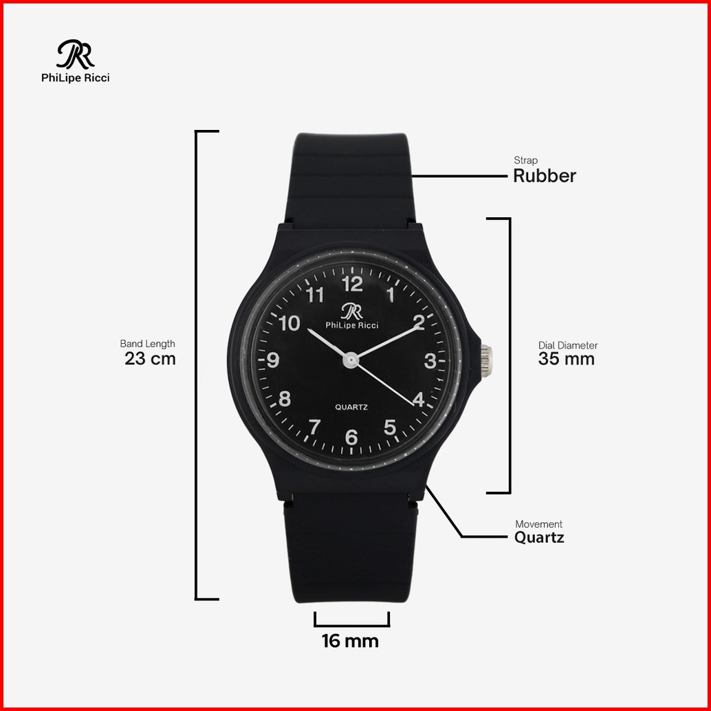 Philipe Ricci Jam Tangan Unisex Kecil Pria Dan Wanita Analog Tahan Air Water Resist 3atm Quartz 6221a Watch Free Box