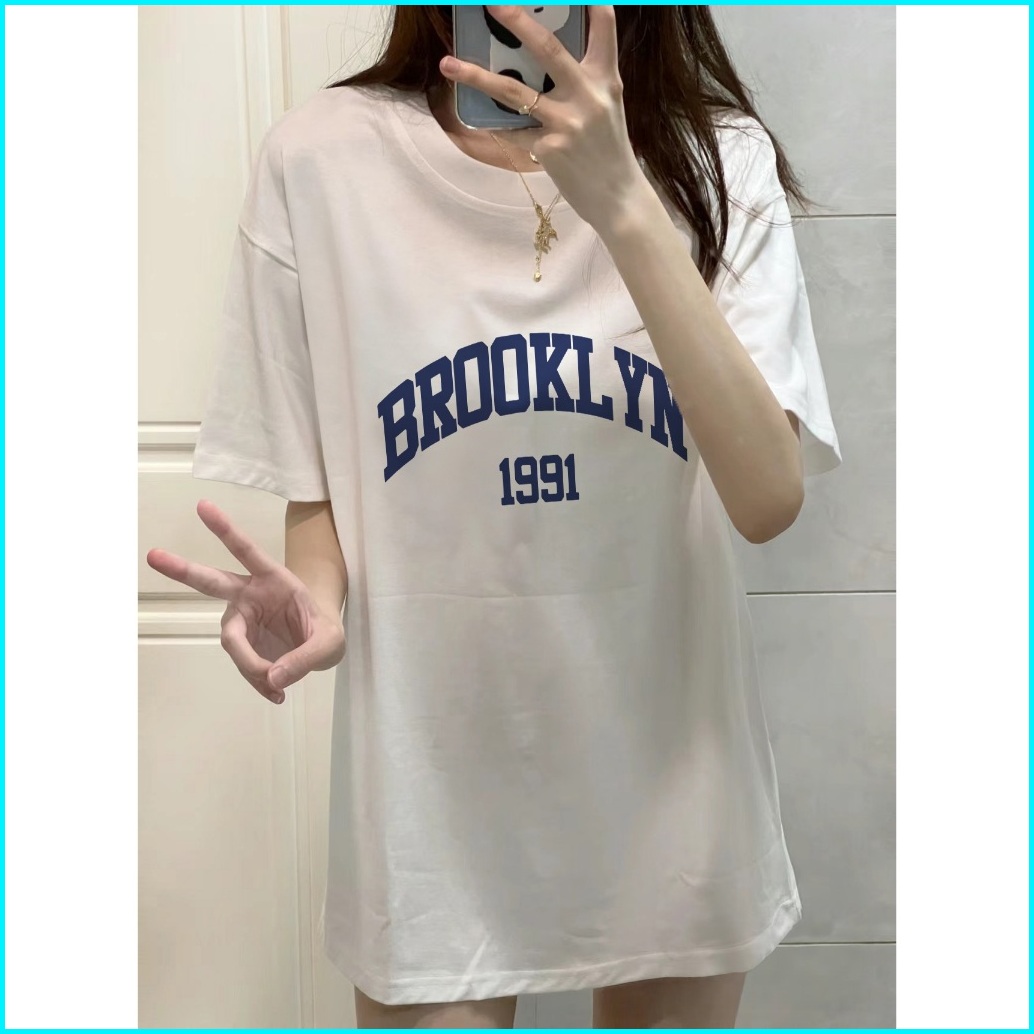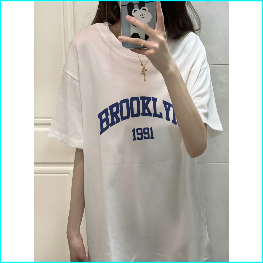 Po Floret Putih Kaos Oversize Blue Letters 1991 Korean Style Wanita Baju Atasan Wanita Terbaru