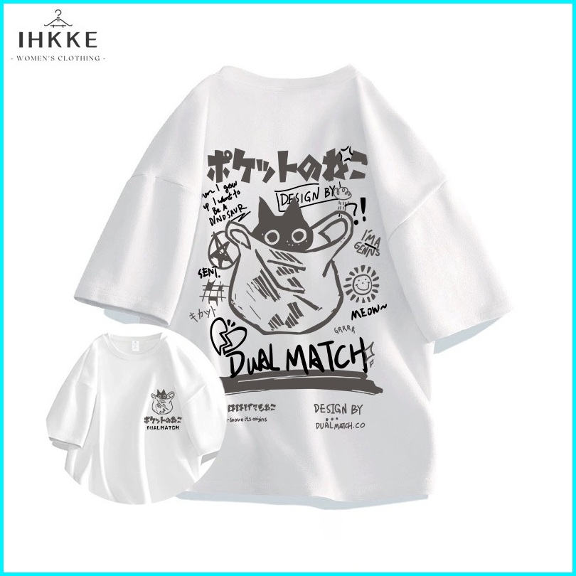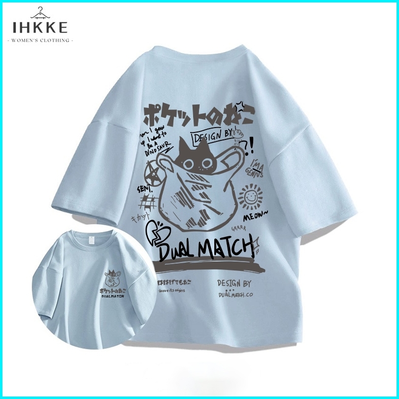 Ihkke Kaos Wanita Baju Oversize Pocket Cat Korean Style T Shirt 100 Cotton Vintage