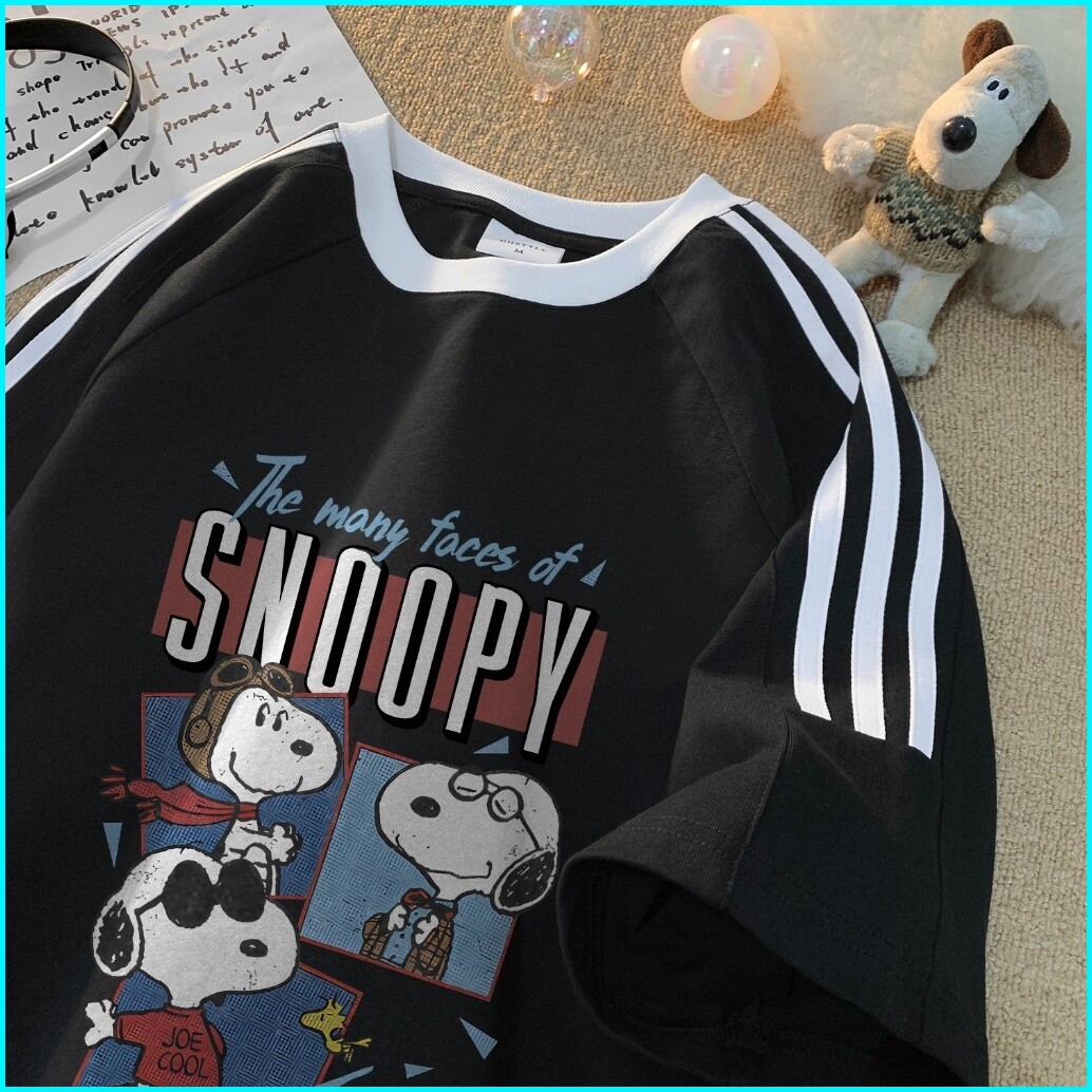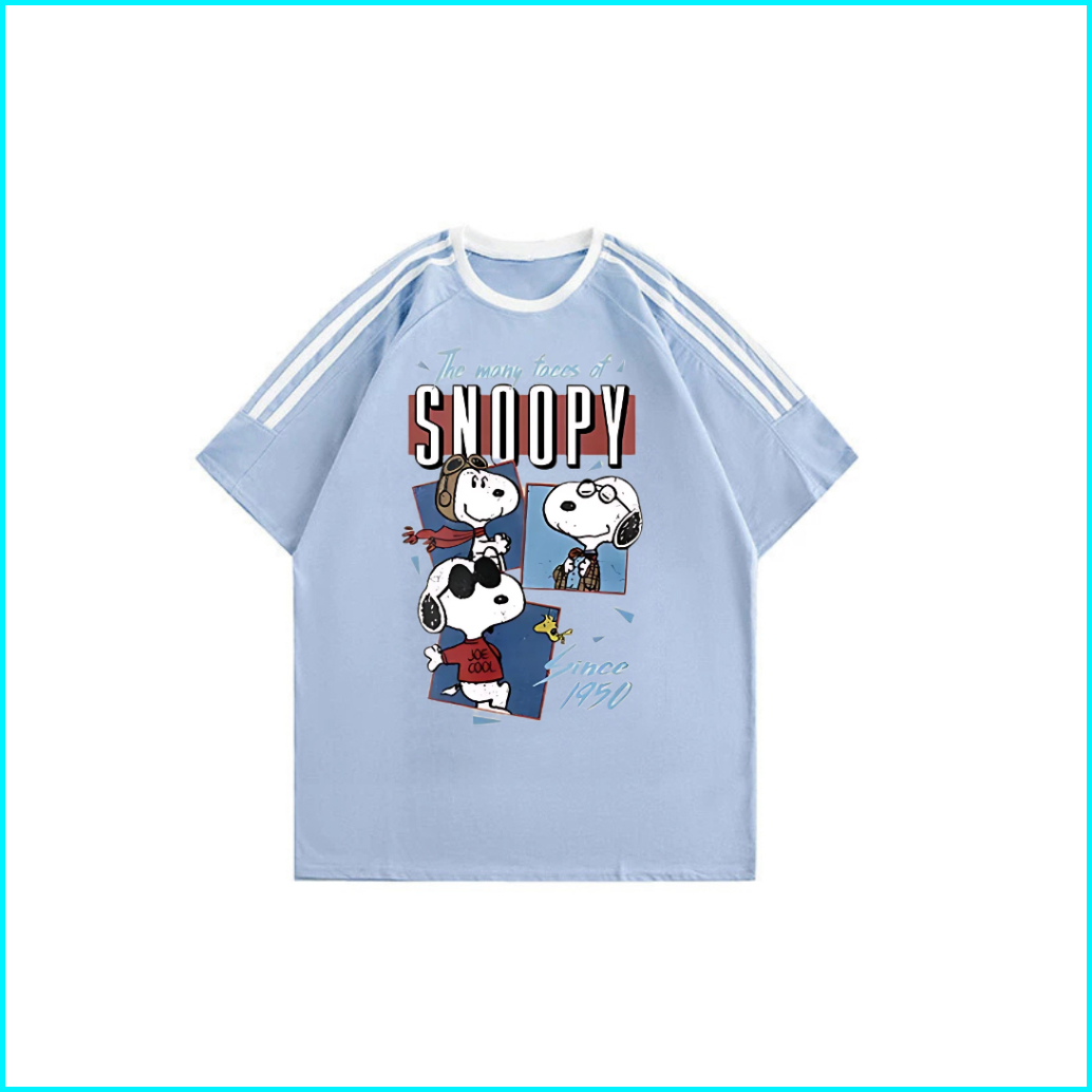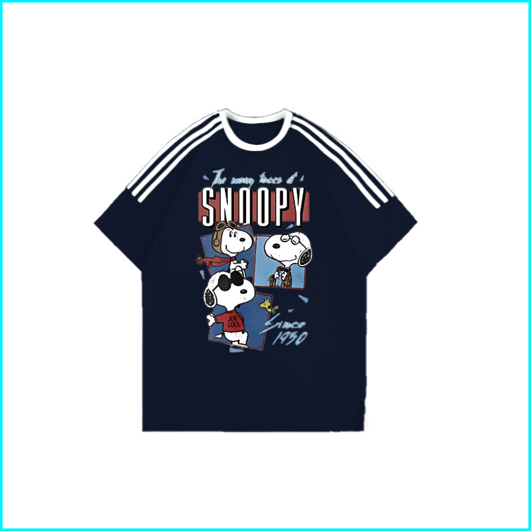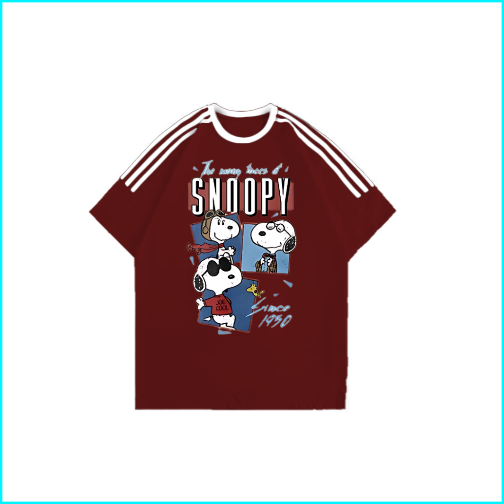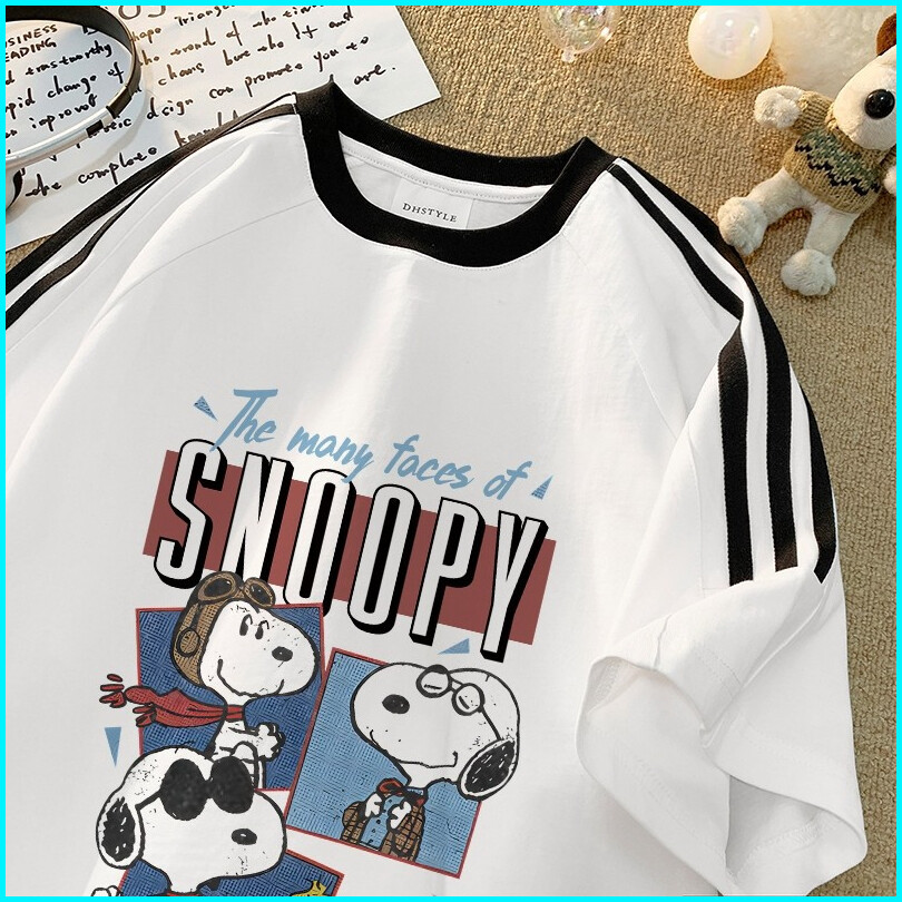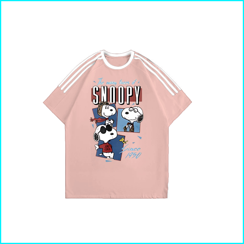 Jessica Korean Tshirt Lengan Pendek Kaos Garis Tiga Snoopy Oversize Korean Style Bahan Cotton 100