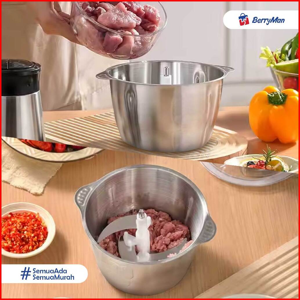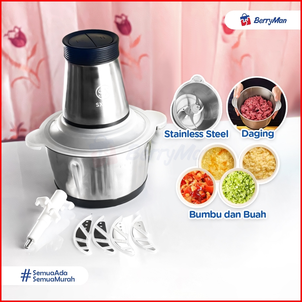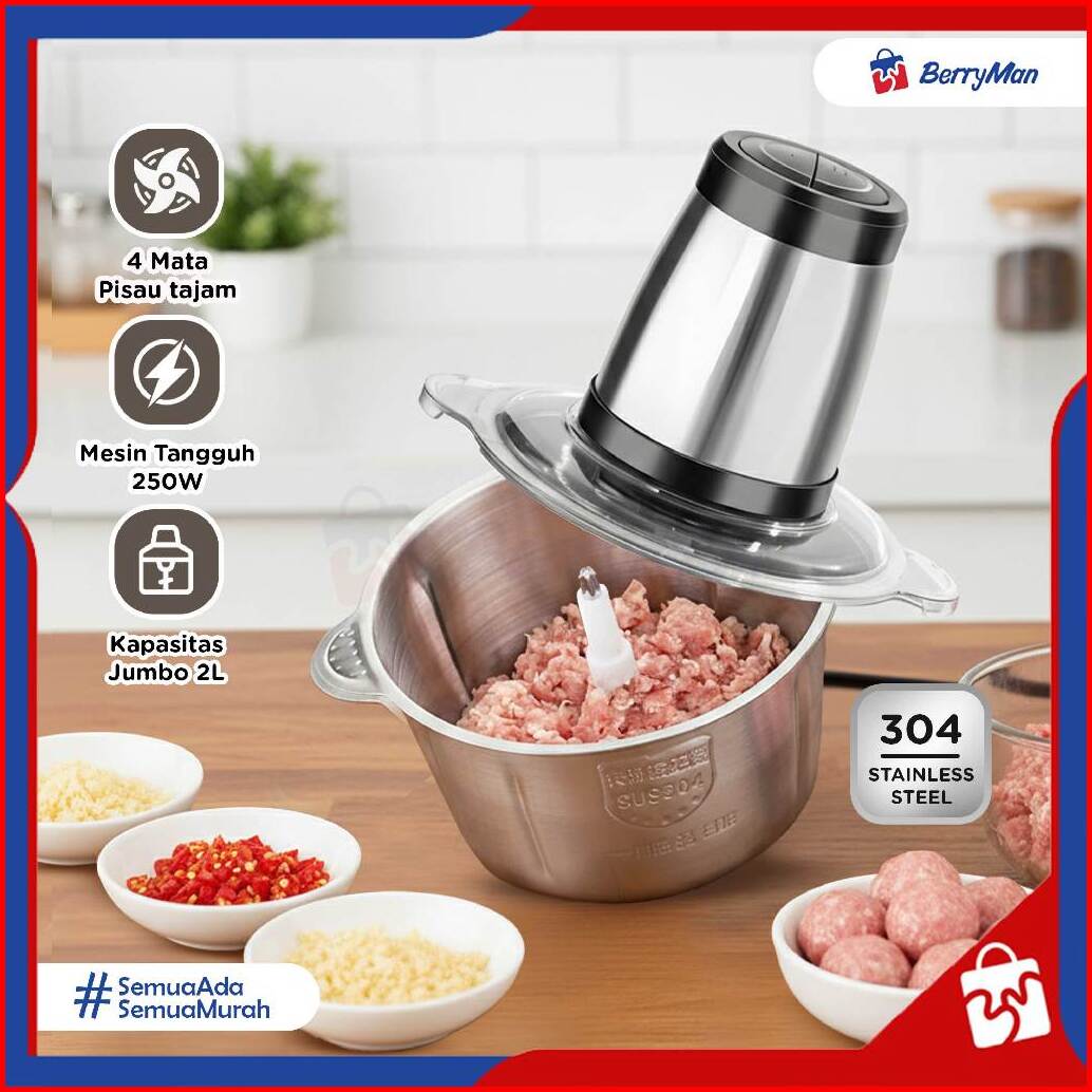 Blender Penggiling Daging 2 Liter 4 Mata Pisau Stainless Steel Meat Chopper Elektrik 250w