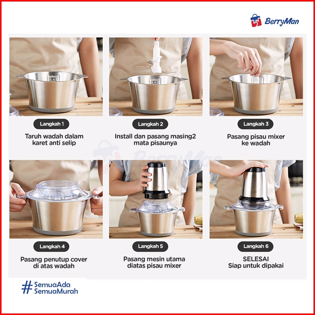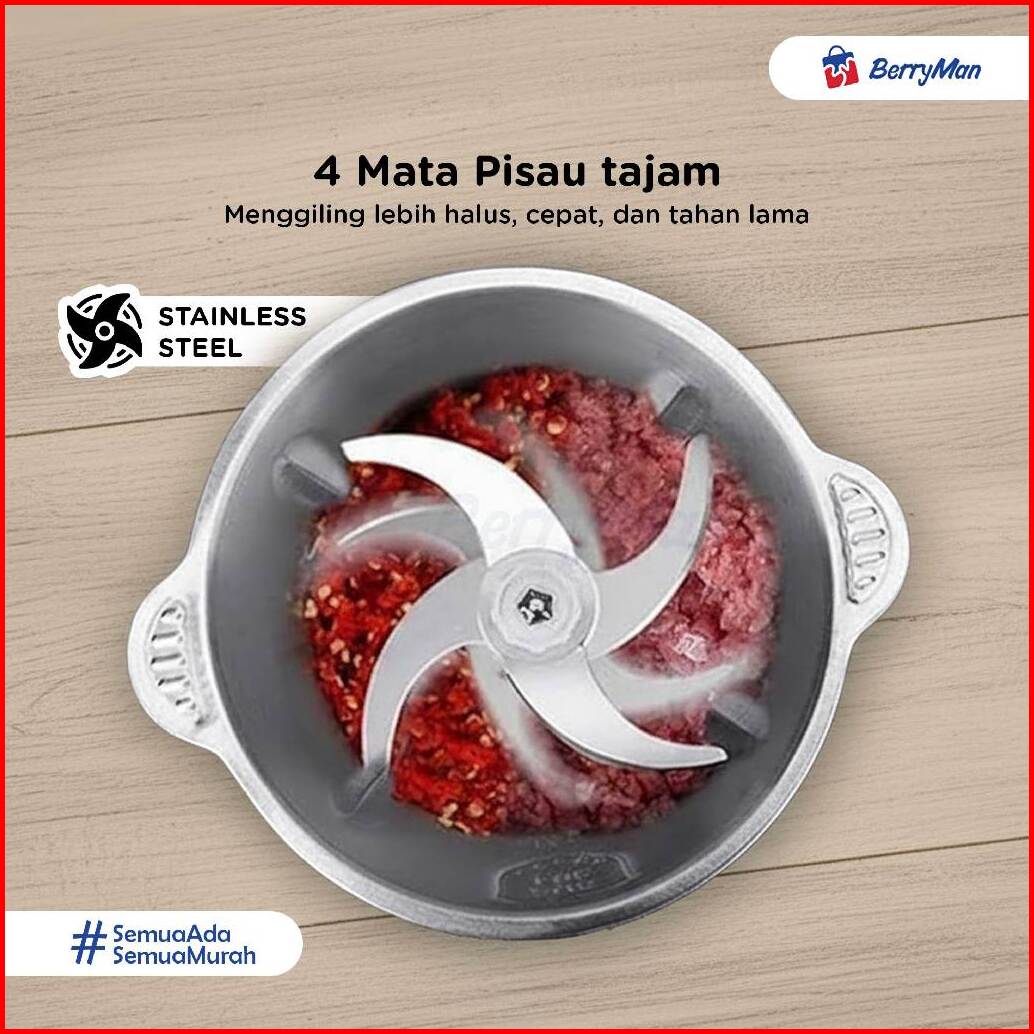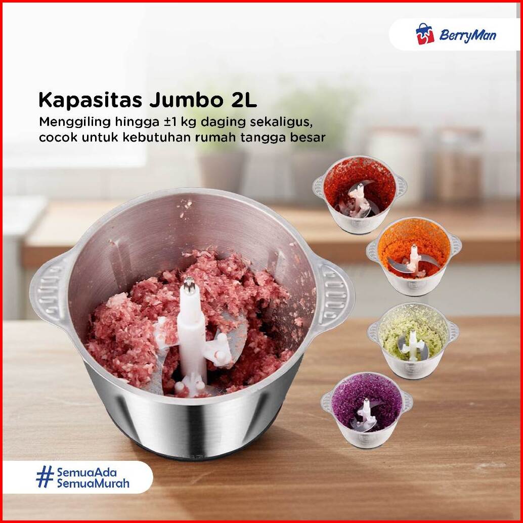 Blender Penggiling Daging 2 Liter 4 Mata Pisau Stainless Steel Meat Chopper Elektrik 250w