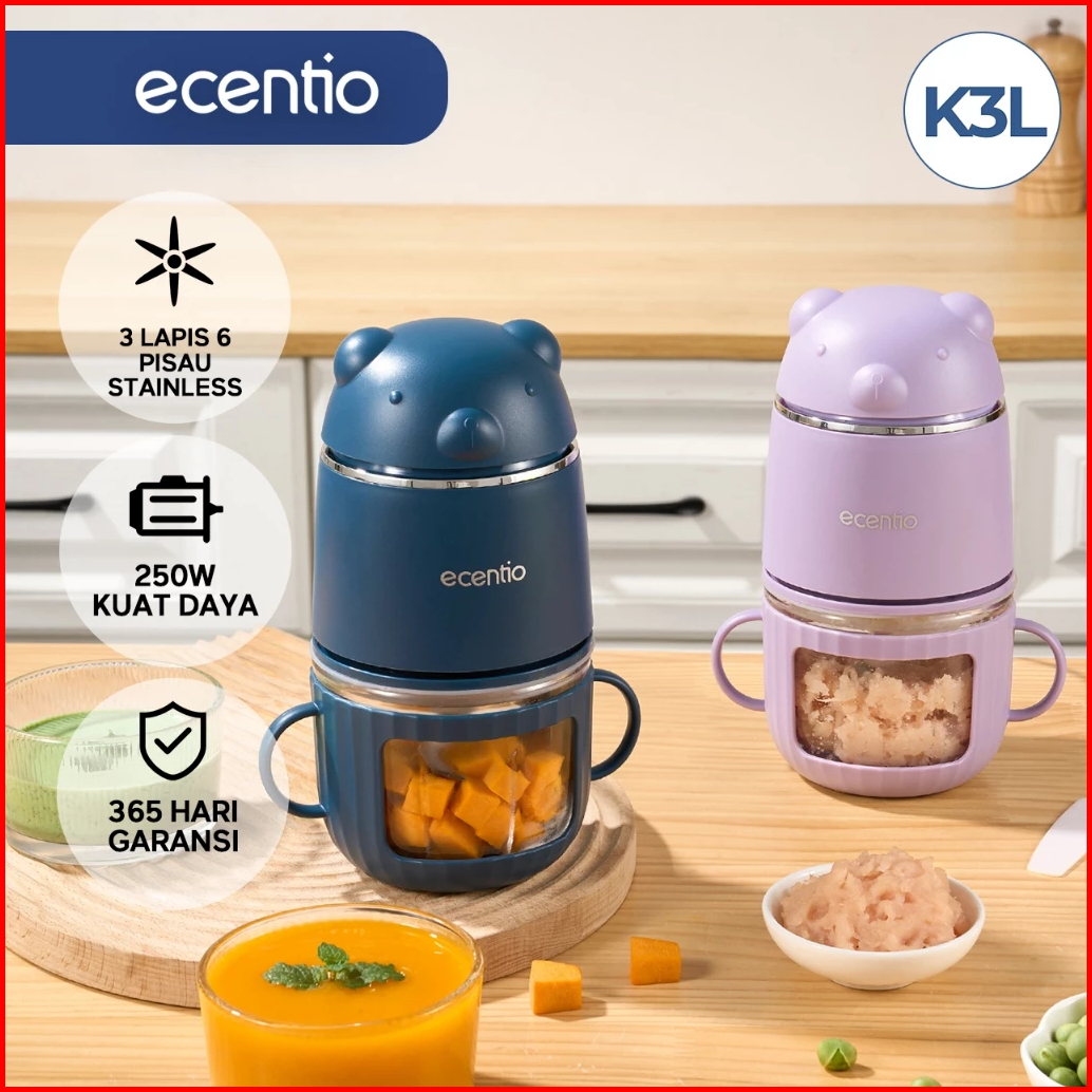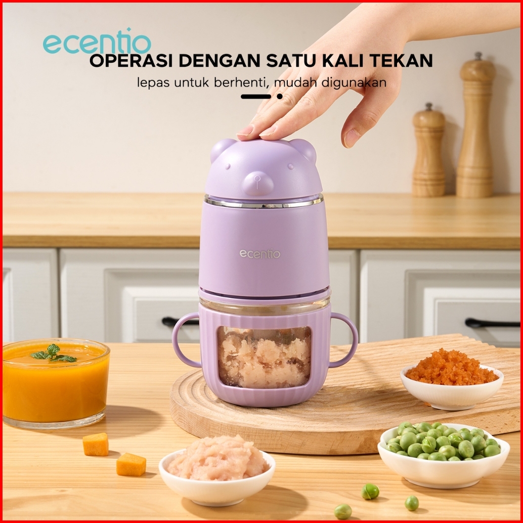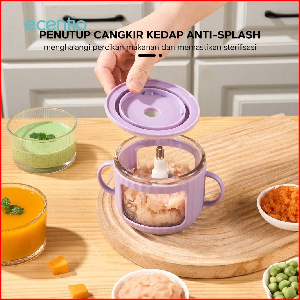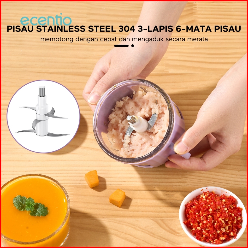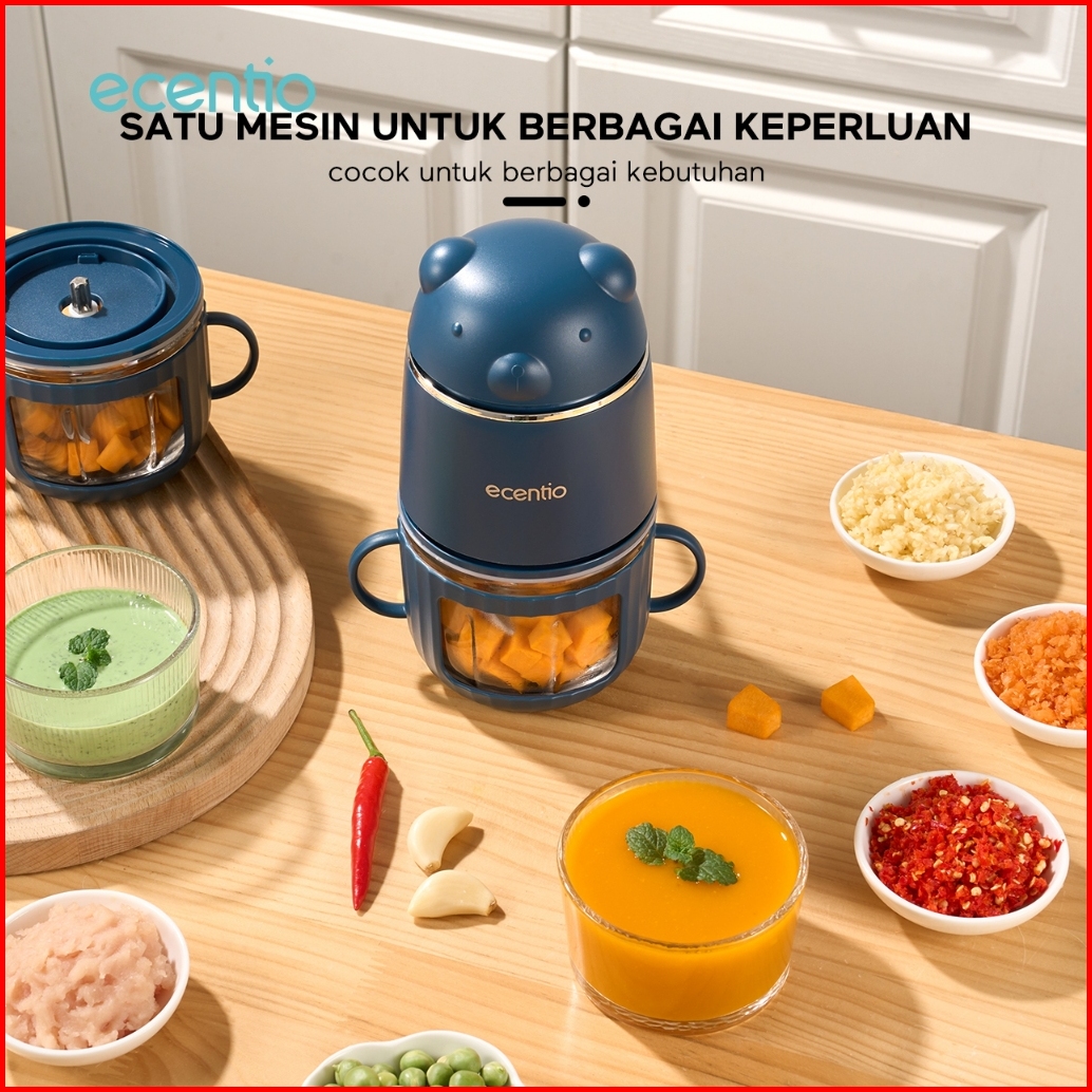 Ecentio Mpasi Blender 350ml 6 Pisau Kaca Food Processor Multifungsi Bayi Penghalus Daging Dan Bumbu Garansi Resmi 1 Tahu