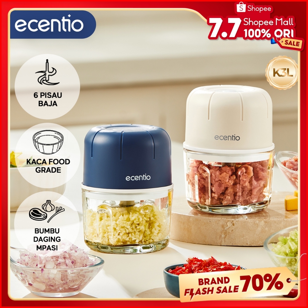 Ecentio Kaca Mini Chopper 250ml Penghalus Bawang Multifungsi 6 Pisau Food Processor 10 Detik Halus Bpa Free Chopper Mini