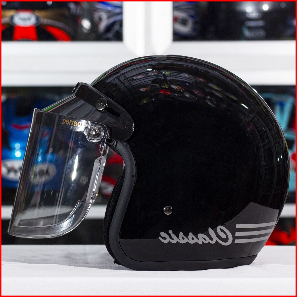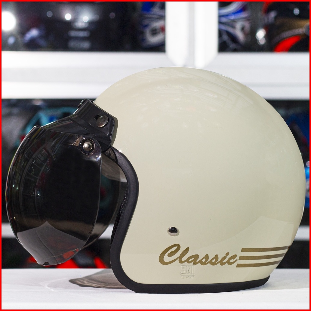Helm Bogo Classic Retro Dewasa Polos Garis Full Leher Sni Helem Bogo Wanita Helmet Bogo Retro Helm Bogo Pria Kaca Datar
