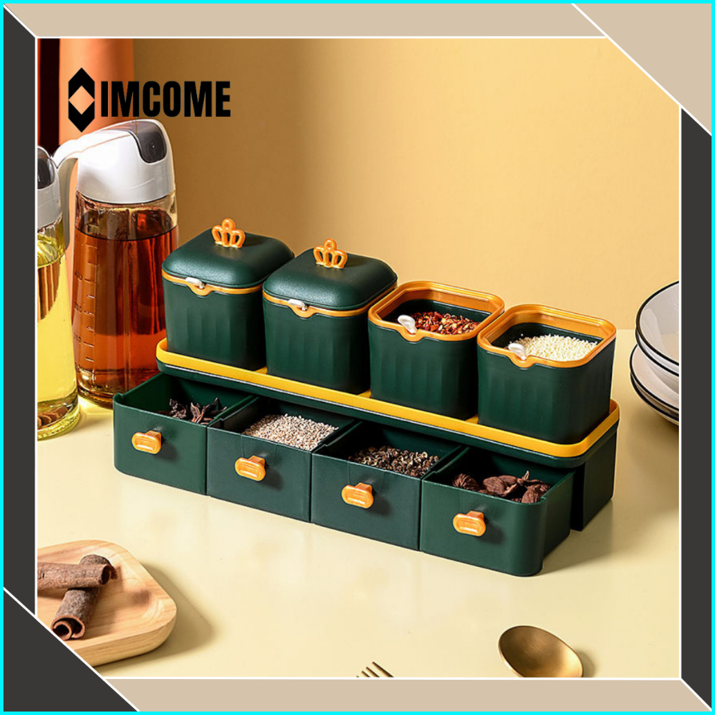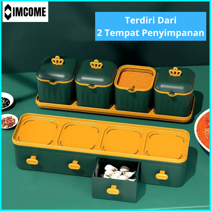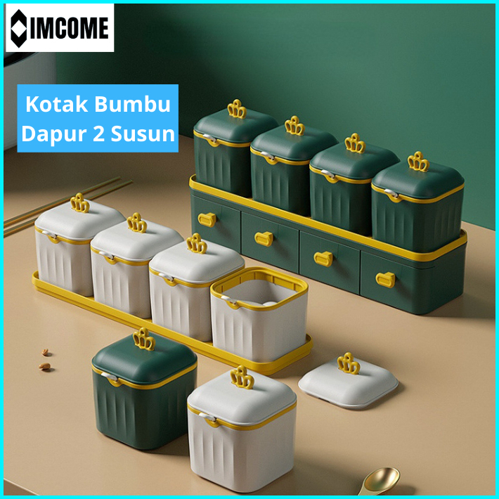 Imcome Rak Bumbu Dapur 2 Susun Tingkat Kotak Tempat Penyimpanan Bumbu Dapur Set Wadah Bumbu Bawang Minimalis Serbaguna 4