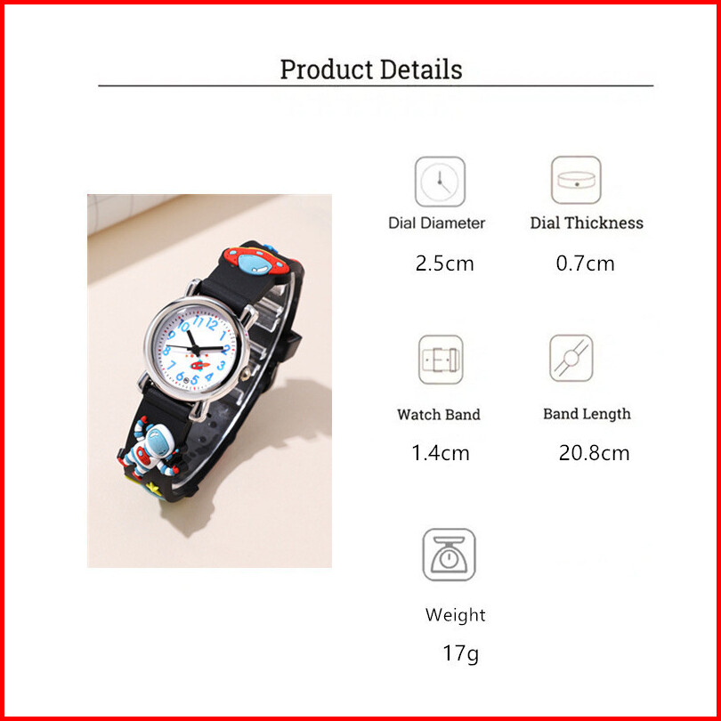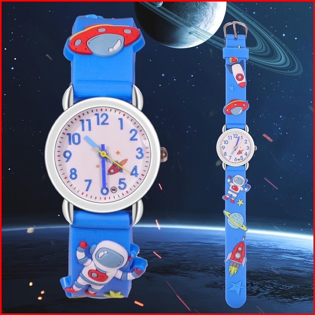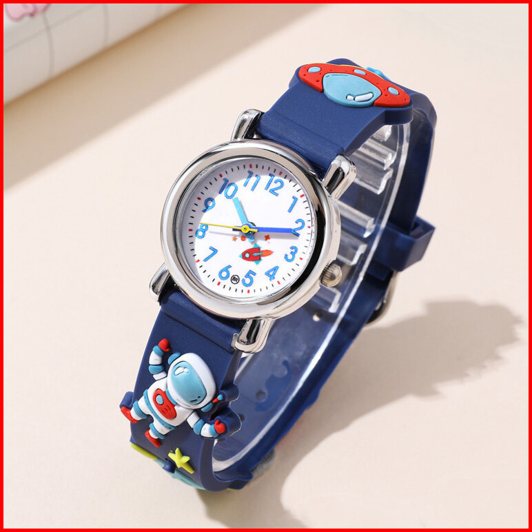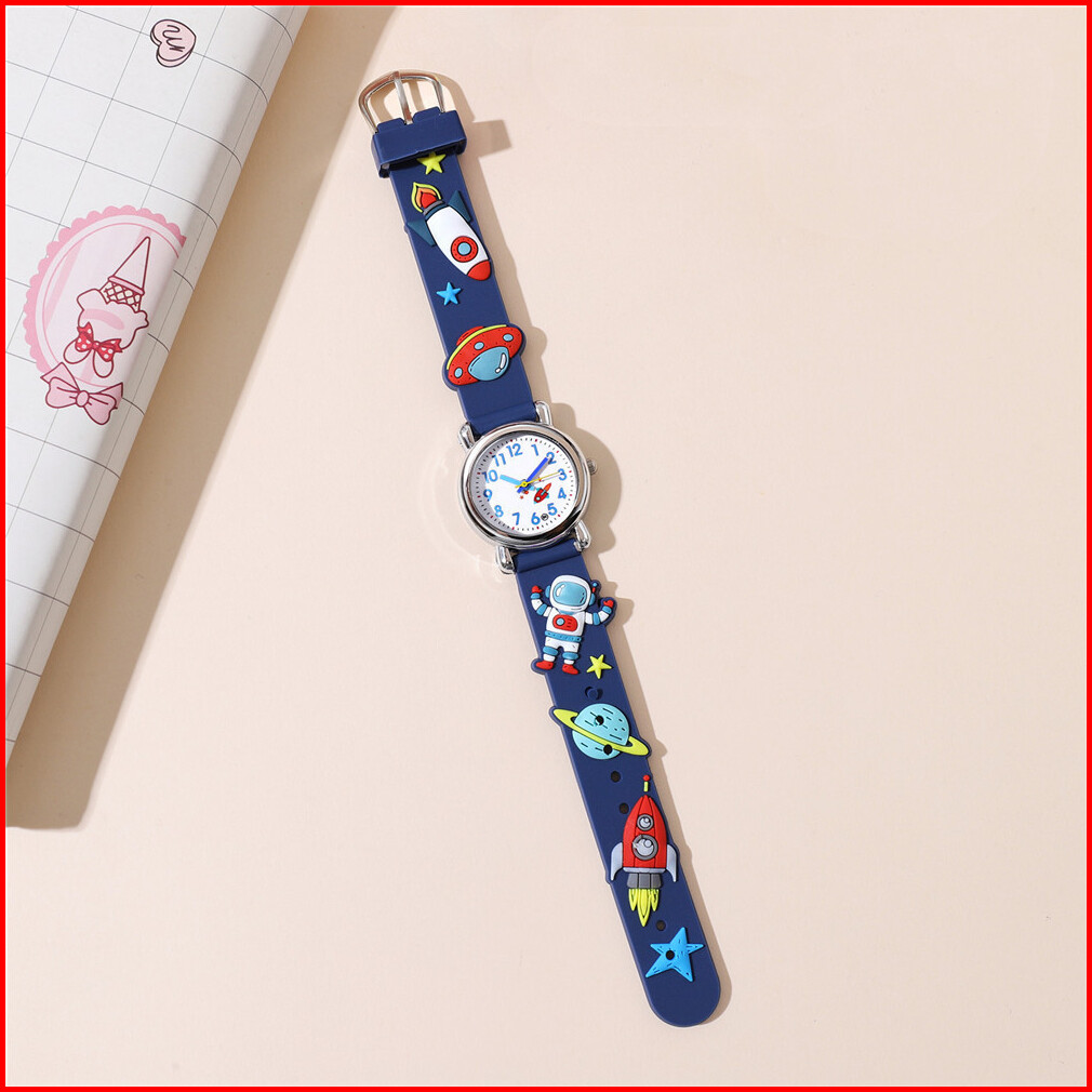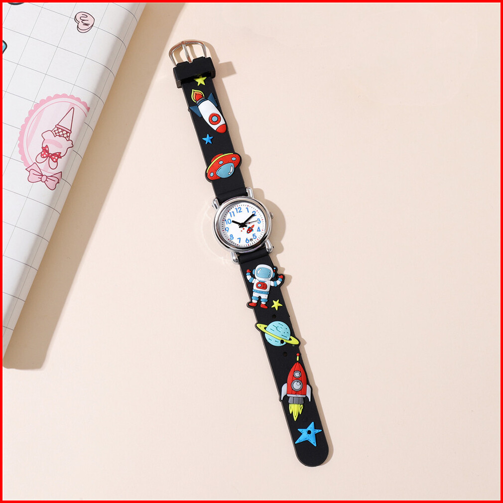 Jam Tangan Kuarsa Anak-anak Kartun Astronot Pesawat Luar Angkasa Silikon