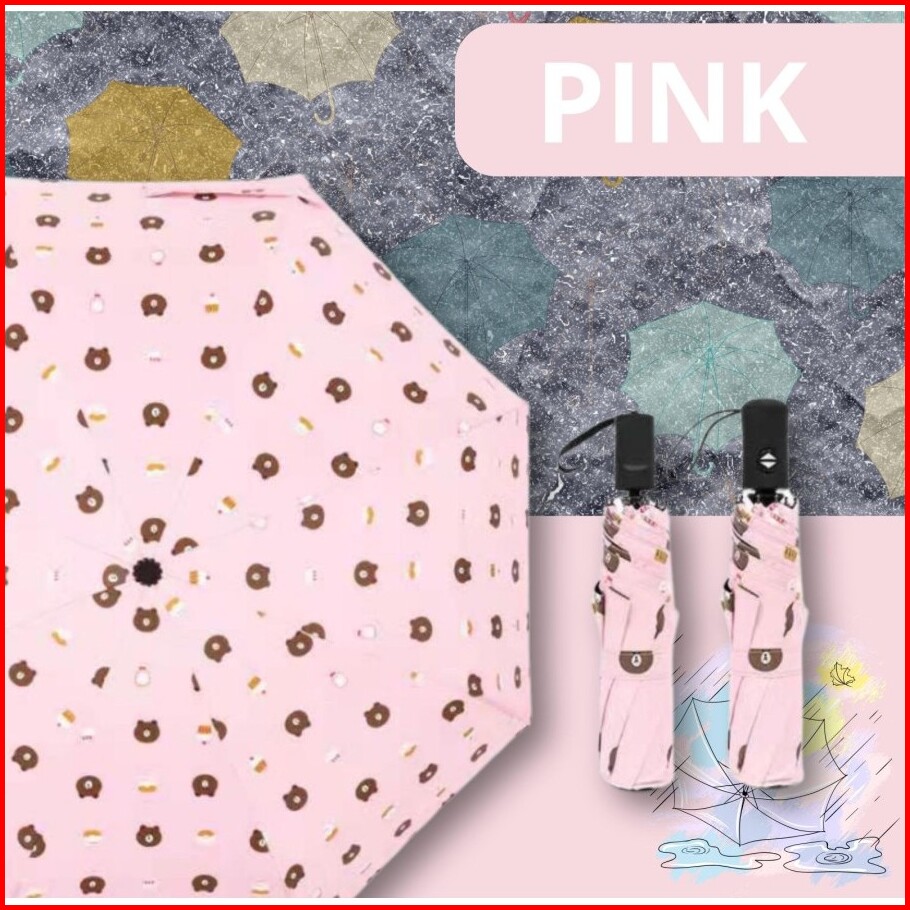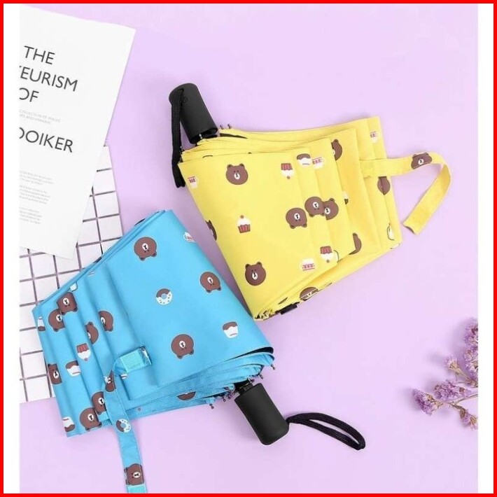 Payung Lipat Manual Motif Karakter Beruang Untuk Hujan Dan Panas