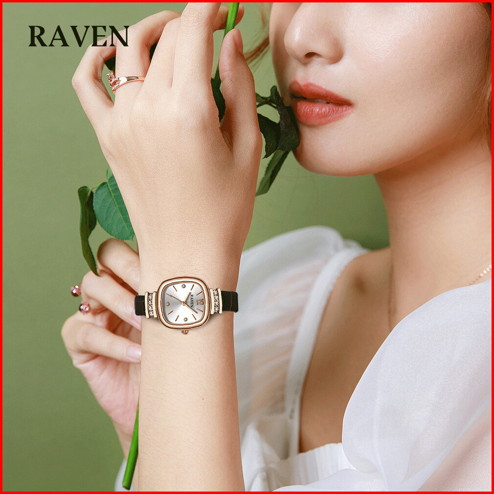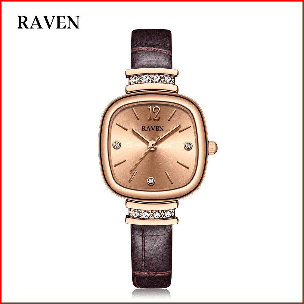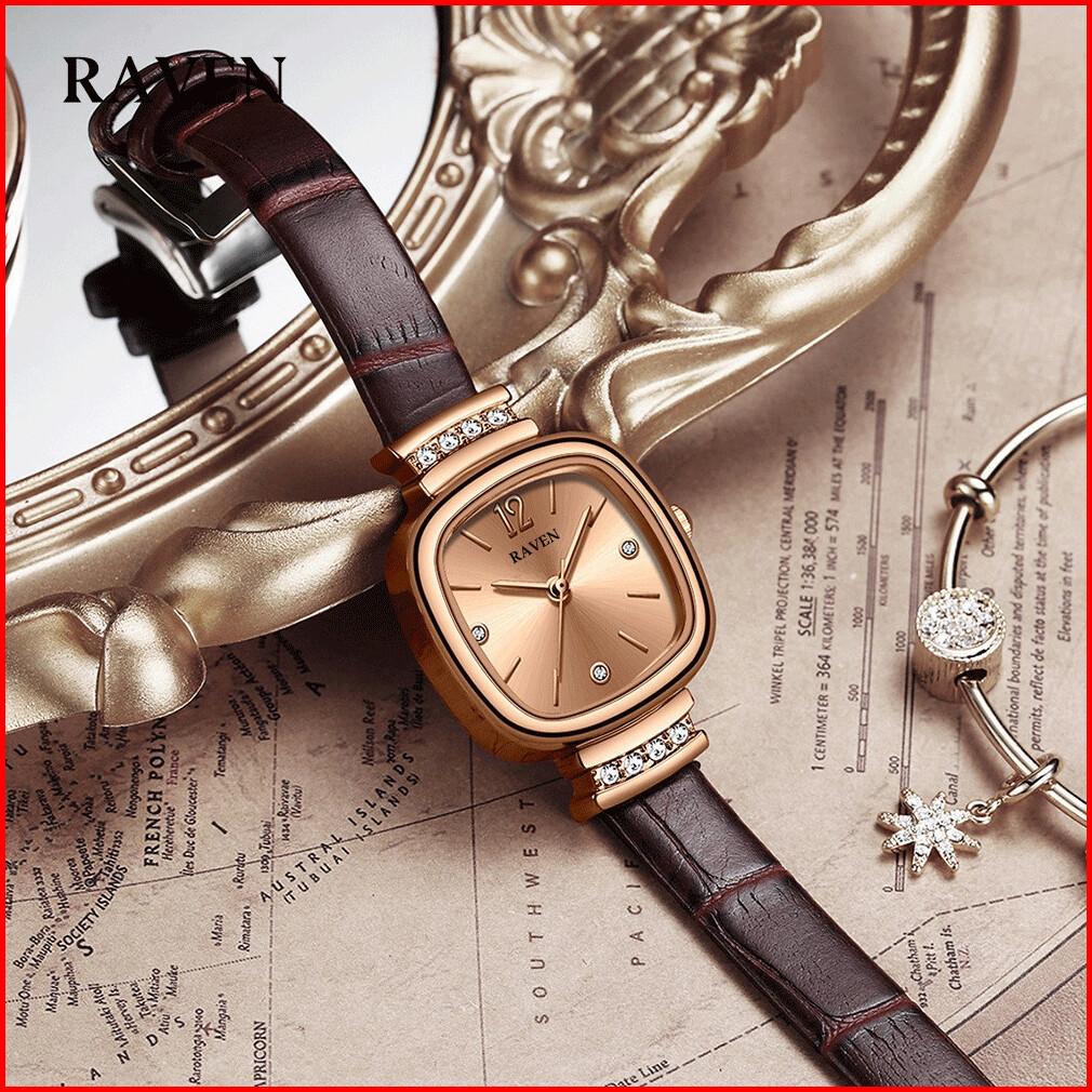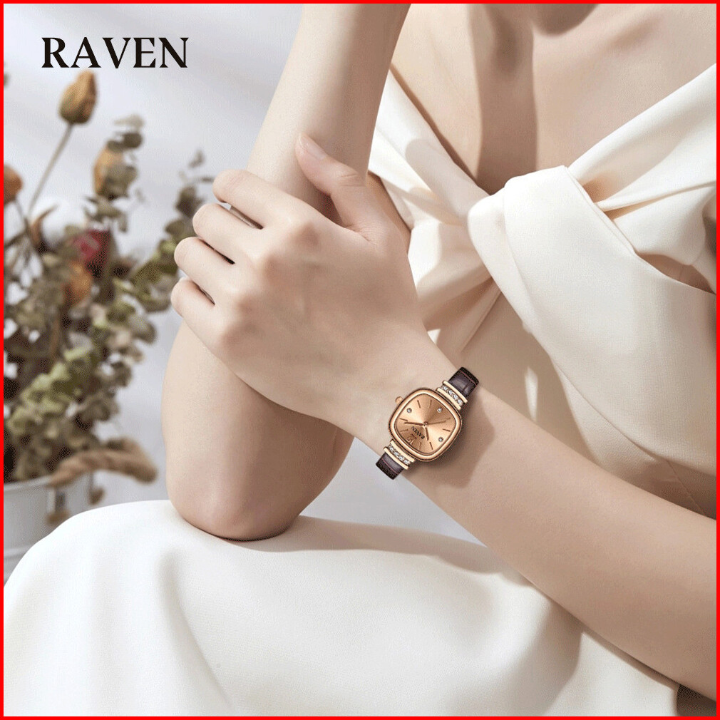 Raven Jam Tangan Wanita Original Berlian Gaya Antik Anggun Jam Kuarsa Tali Kulit Jam Tangan Cewek