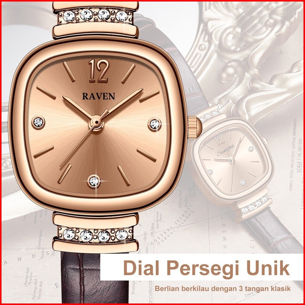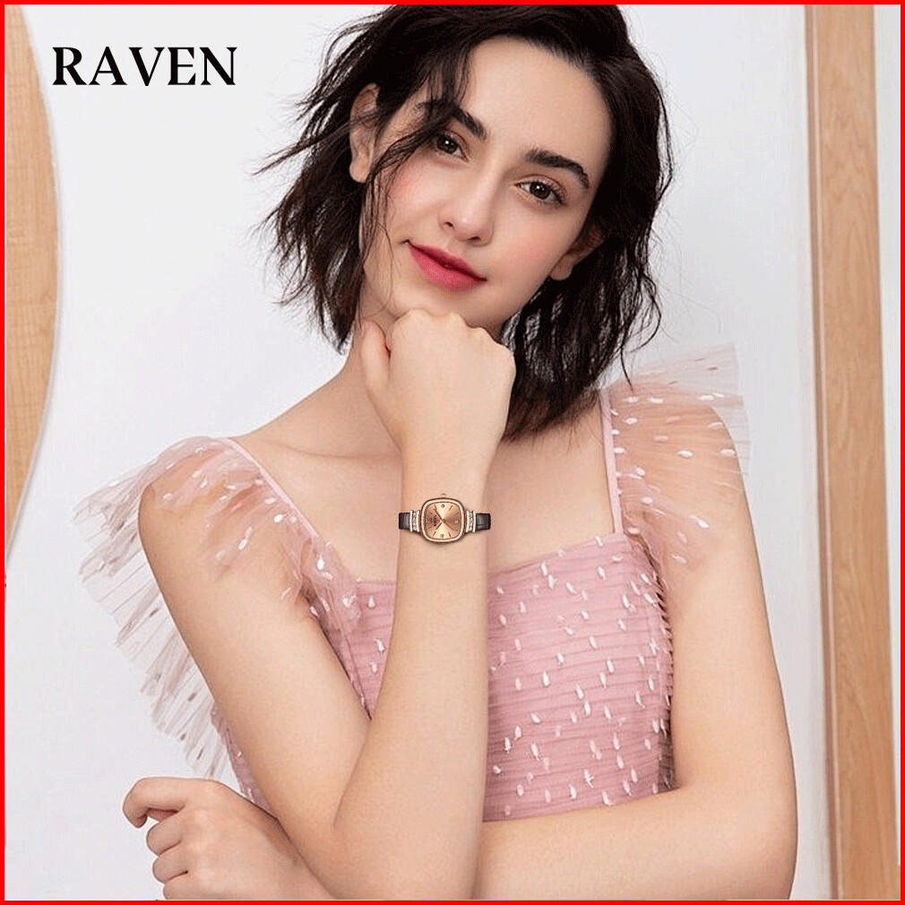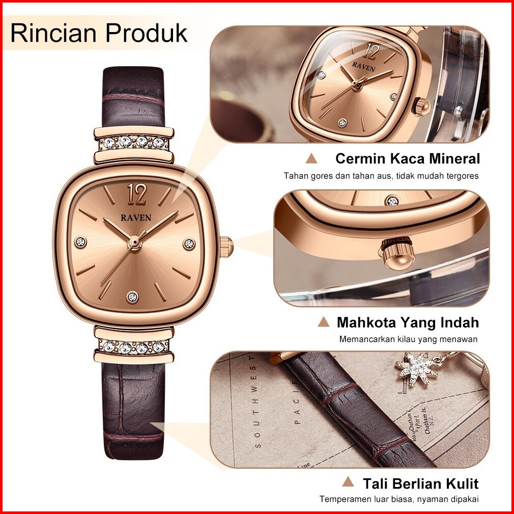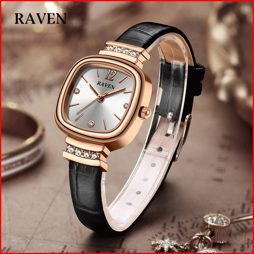 Raven Jam Tangan Wanita Original Berlian Gaya Antik Anggun Jam Kuarsa Tali Kulit Jam Tangan Cewek