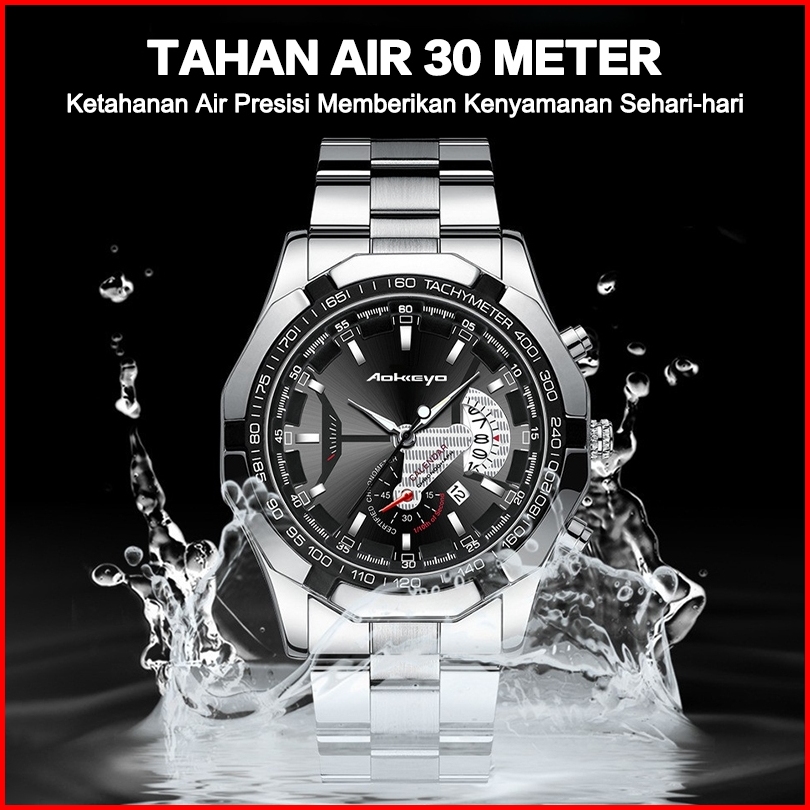 Aokeyo S001 Jam Tangan Pria Anti Air Original Luxury Stainless Steel Free Box Kartu