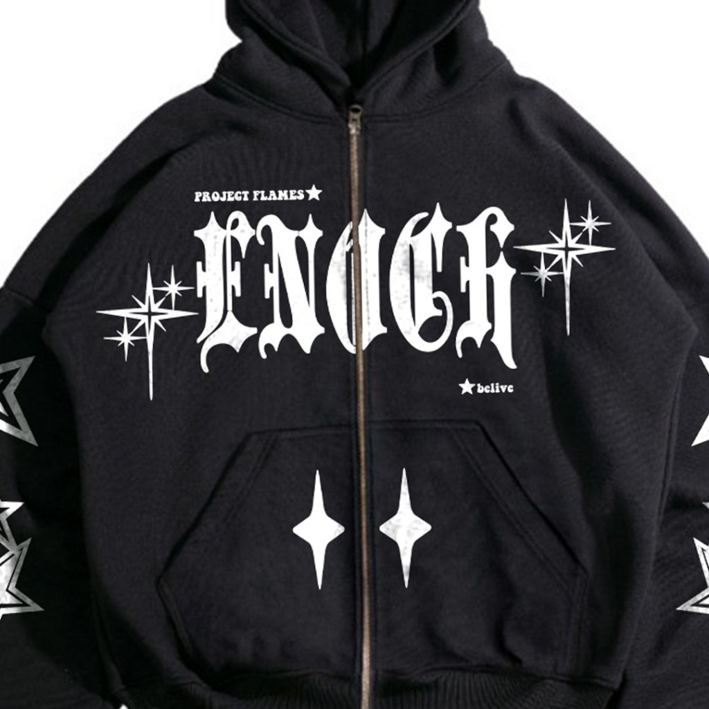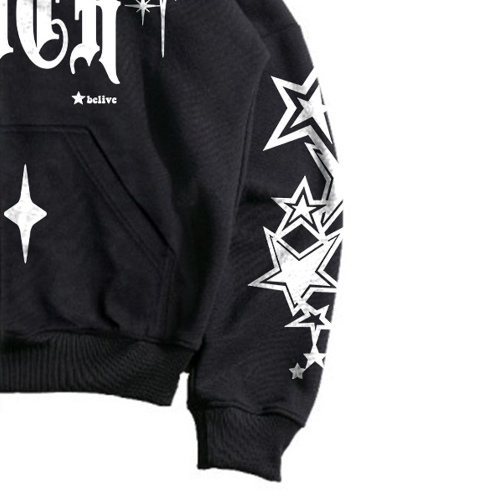 Hoodie Zipper Boxy Oversize Fleece Hitam