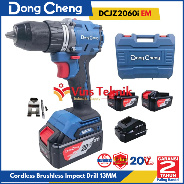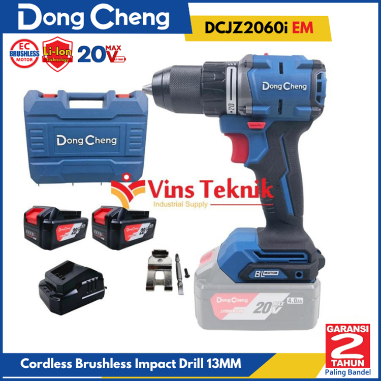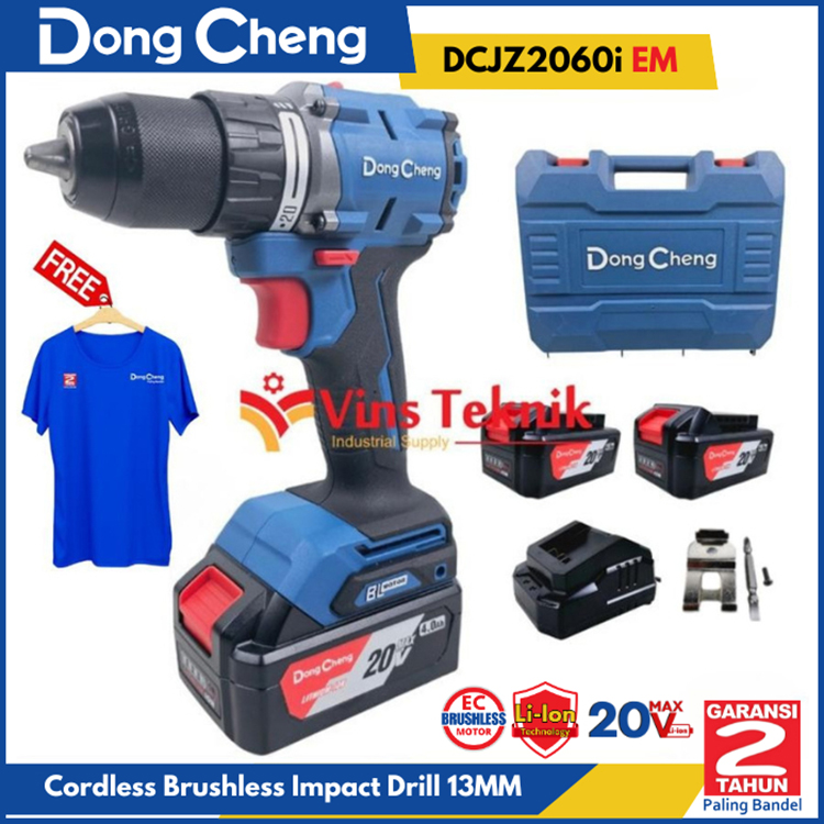 Dongcheng Dcjz2060i Z/Em Cordless Brushless Impact Drill/Mesin Bor Impact Baterai 13 Mm/Mesin Bor Set 2 Baterai Lengkap