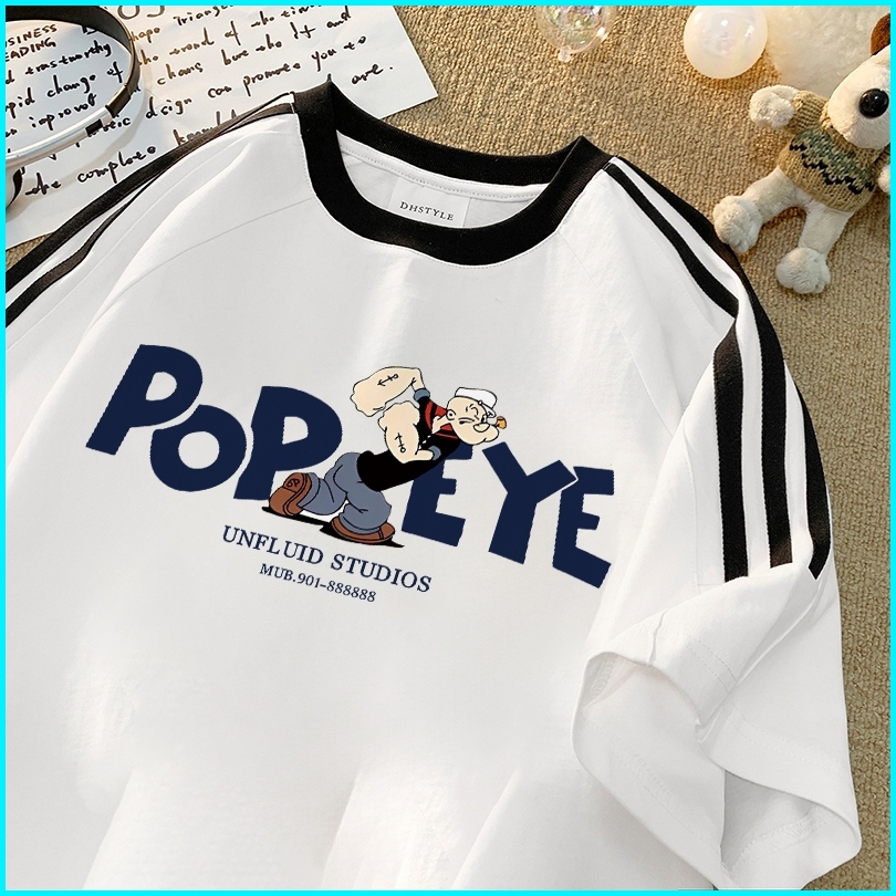Forteid Cetakan Merek Trendi Retro Baju Oversize Pola Popeye Korean Style Kaos Longgar