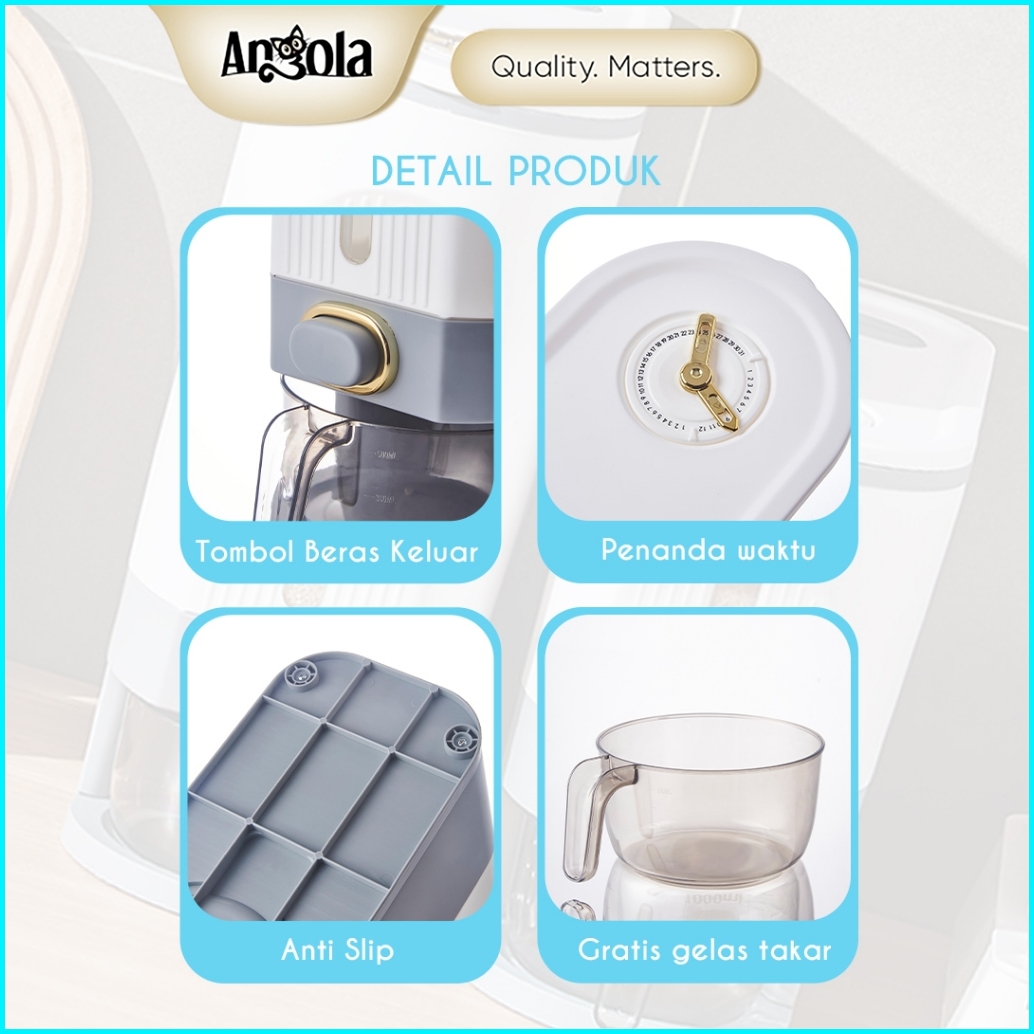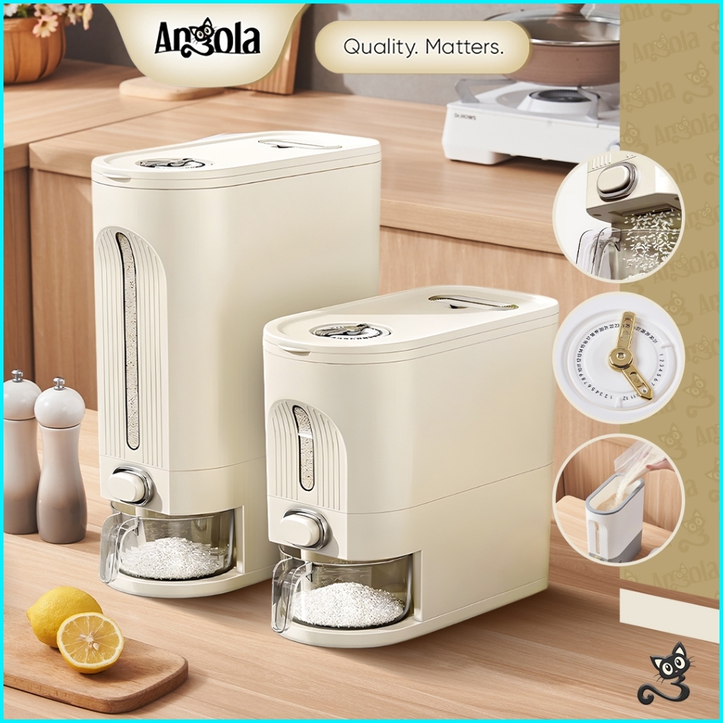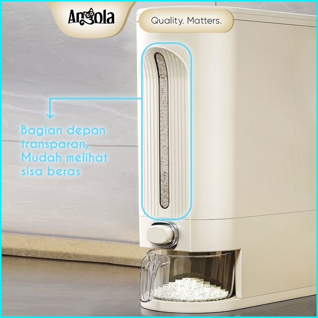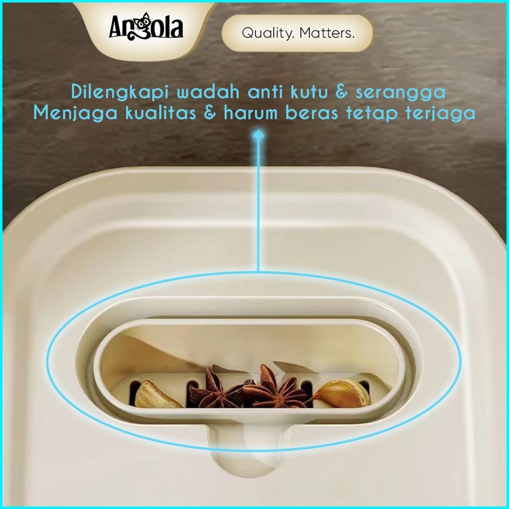 Angola Dispenser Beras Otomasi Anti Kutu 10kg E18 Tempat Beras Gratis Mangkok Cuci Beras Rice Bucket