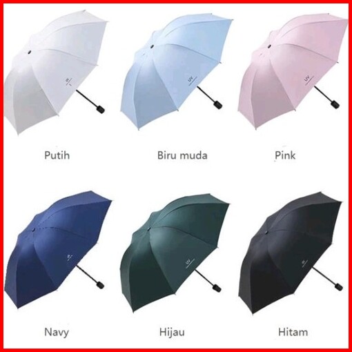Payung Uv Korea Style Anti Uv Anti Panas Ultra Violet Anti Hujan Payung Lipat Anti Sinar Uv Protection Motif Polos