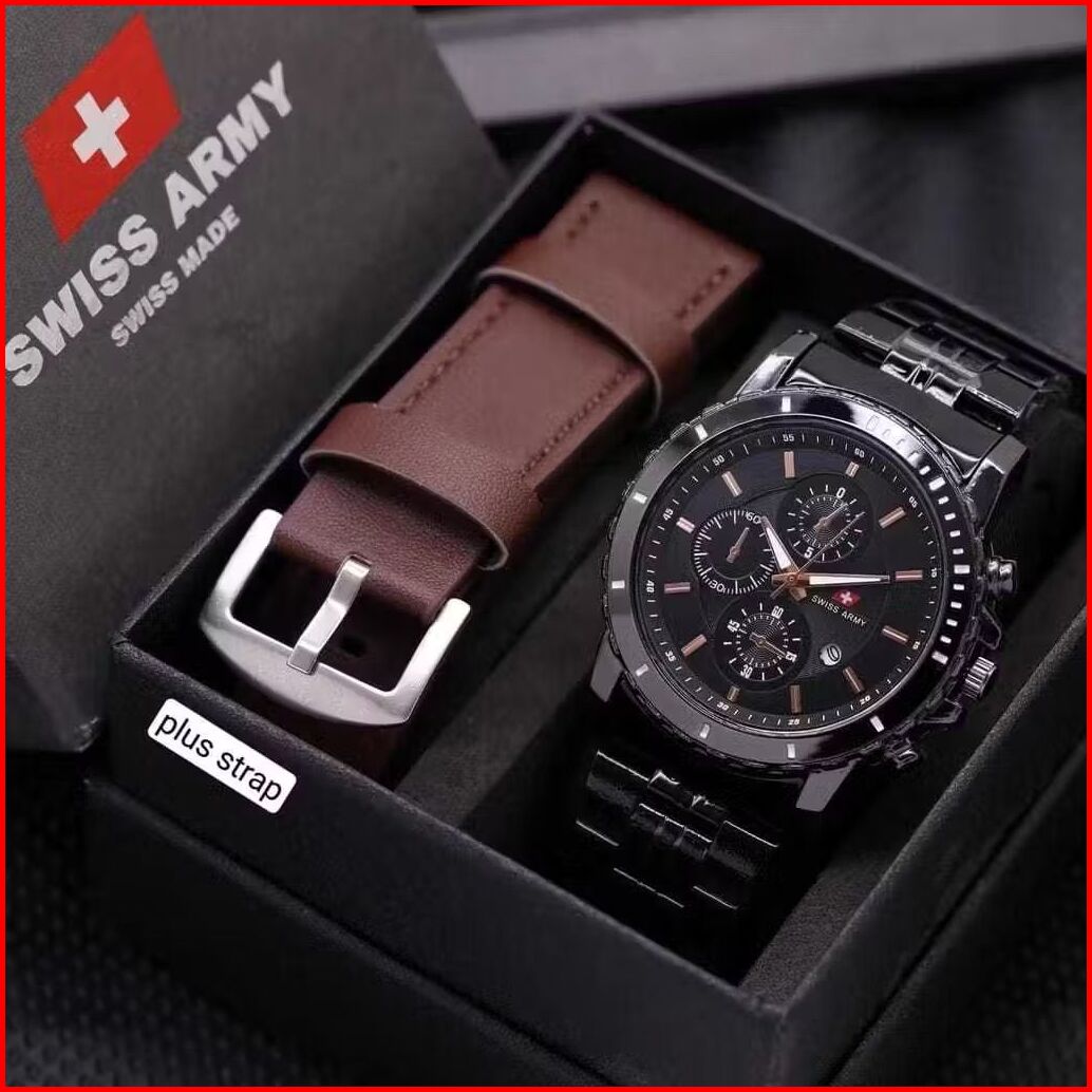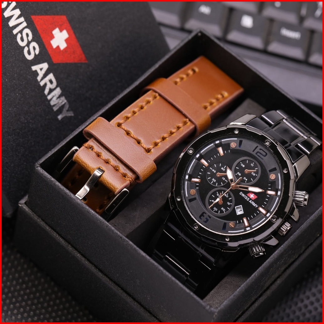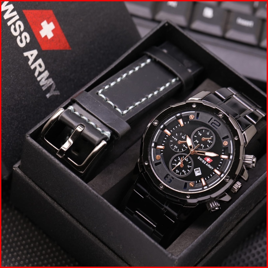 Promo Jam Tangan Pria Sw990 Army Kulit Tanggal Aktif Free Box Baterai Cadangan