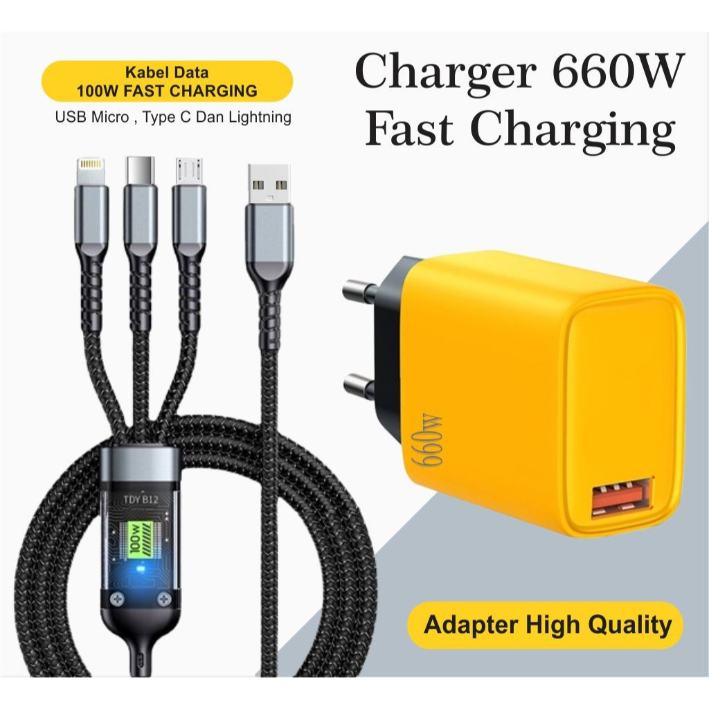 Charger 660W Batok 131 + Kabel Data 3in1 100W Fast ChargingUSB Micro, Type C, Lightning Best Quality