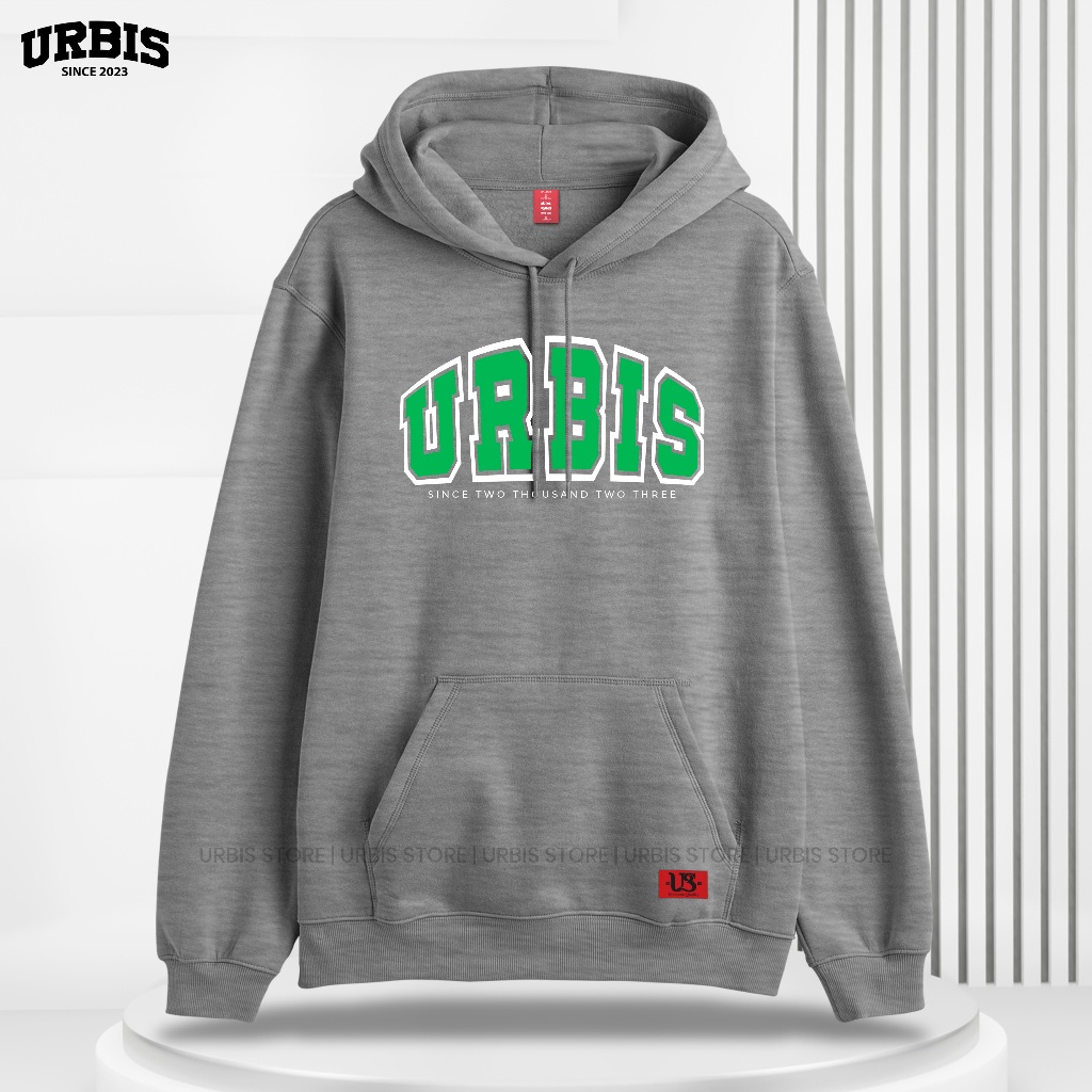 Sweater Hoodie Jumper Pria Wanita Size M - XXL Motif Sablon URBIS GREEN Bahan Fleece Tebal Premium