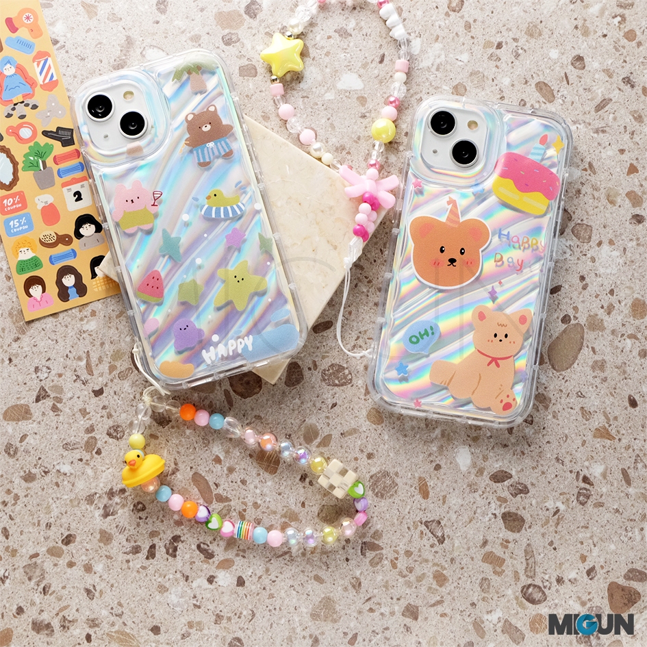 case softcase Set Korean Bear Case + String. Softcase Hologram Full Cover for iPhone 15 15pro 15promax 15plus 7 8 SE2020