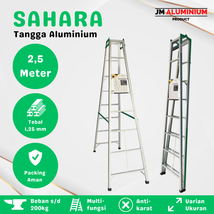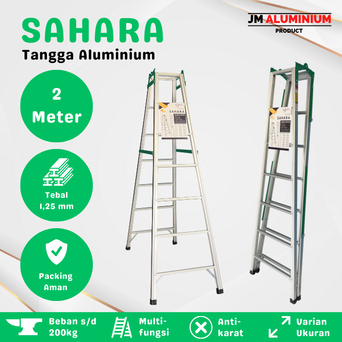 TANGGA LIPAT ALUMINIUM MULTIFUNGSI 2M 2 METER 150CM TIPE SAHARA BIRU HIJAU TEBAL 1,25 MM KUAT KOKOH ANTI KARAT MURAH
