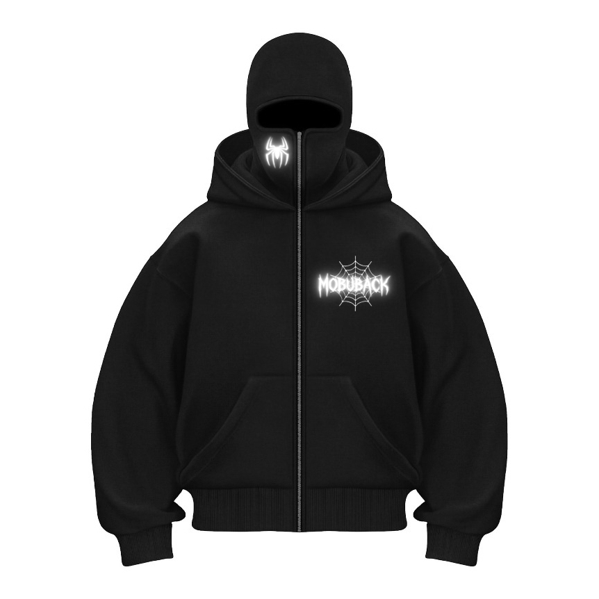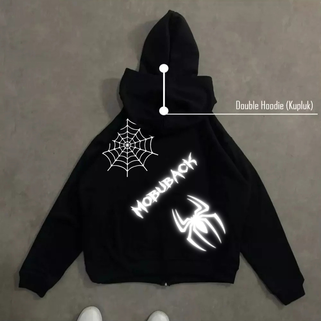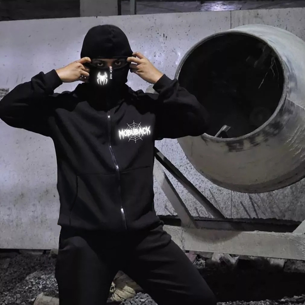 Jaket Sweater Hoodie Balaclava Menyala Reflektif Conqueror Spider Fleece Lembut 280gsm M L XL XXL