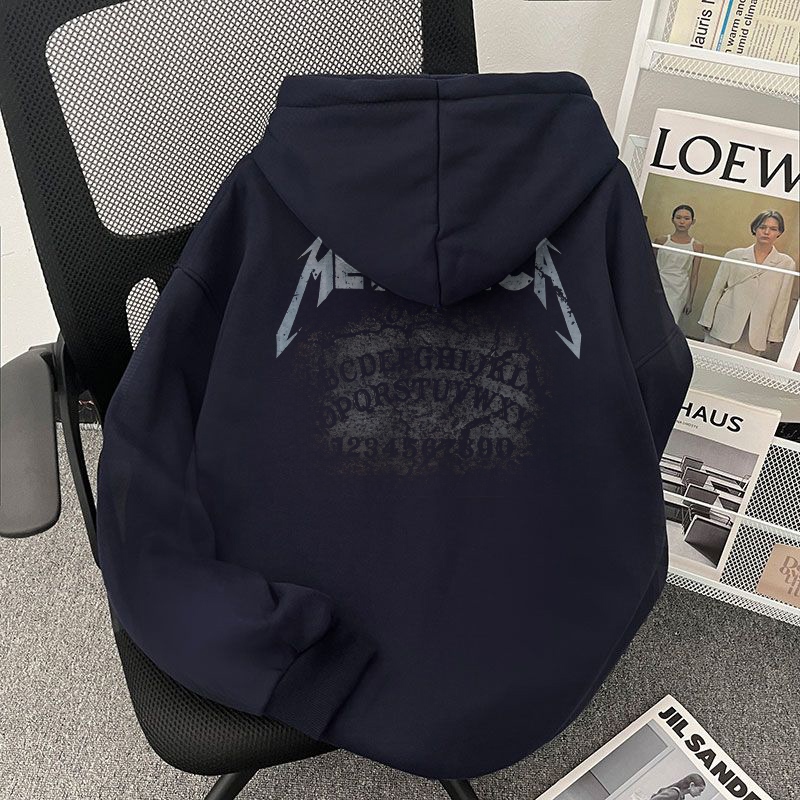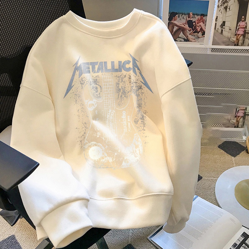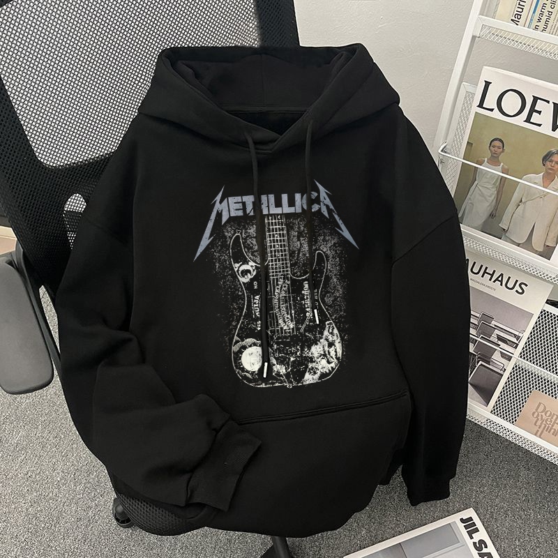Marlacoeur Hoodie Sweter Putih Sweater Hoodie Tren Retro hoodie Pria/Pola gitar Metallica Amerika/Sweter Bertudung Kuali