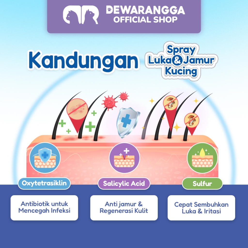 Dewarangga Spray Luka Dan Jamur Kucing untuk Perawatan Segala Jenis Luka Luar, Koreng, Luka Basah, Luka Kering yang Aman