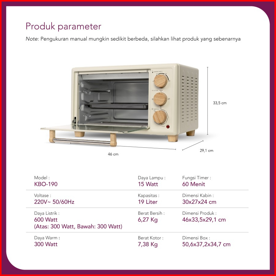 Kirin Oven Kbo 190lw Oven Toaster 19liter Kbo-190lw Omni Oven Kbo 190 Kbo190 Kbo 190lw