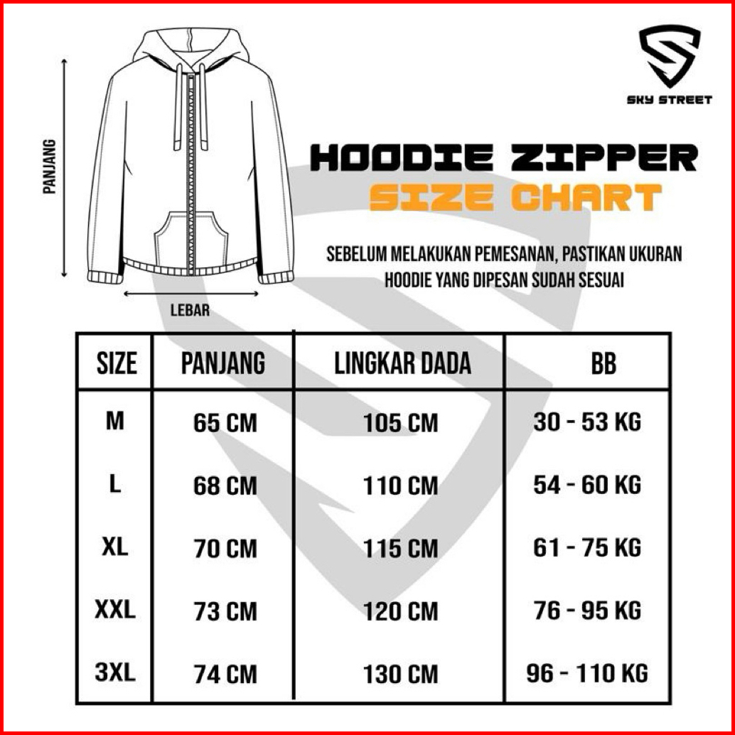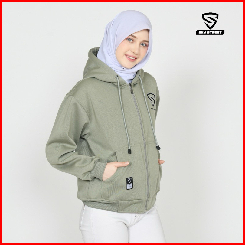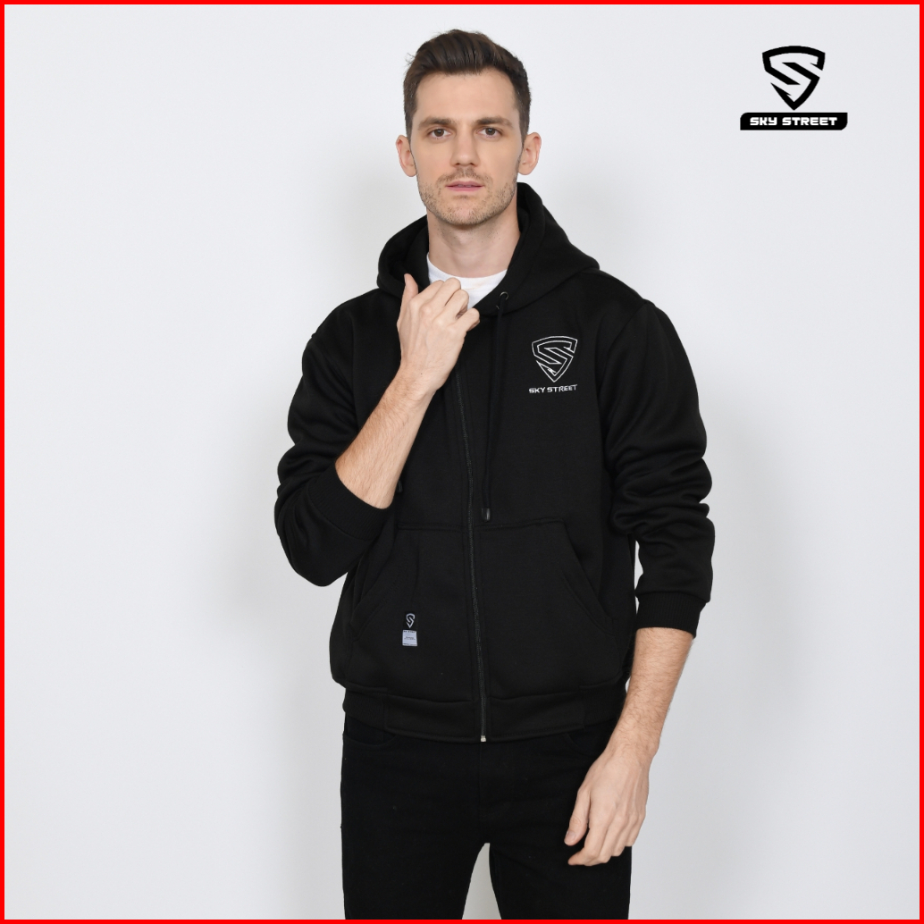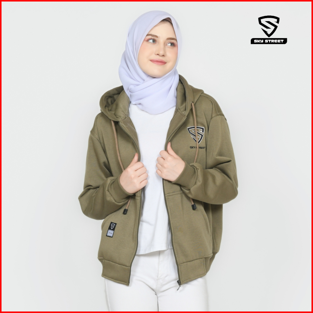 Sky Street Hoodie Sweater Jacket Zipper Resleting Logo Bordir 280 Gms Tebal Lembut Unisex Pria Wanita Bahan Fleece Distr