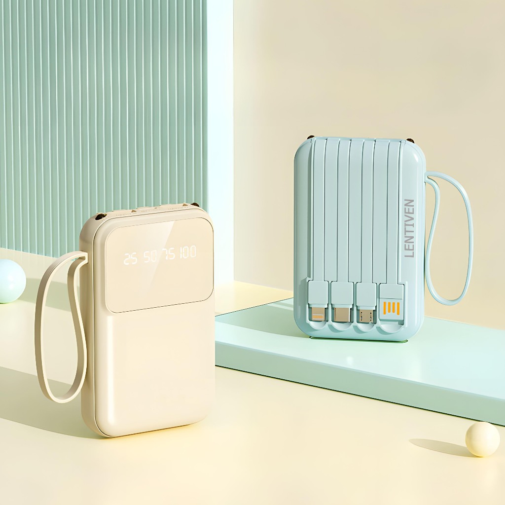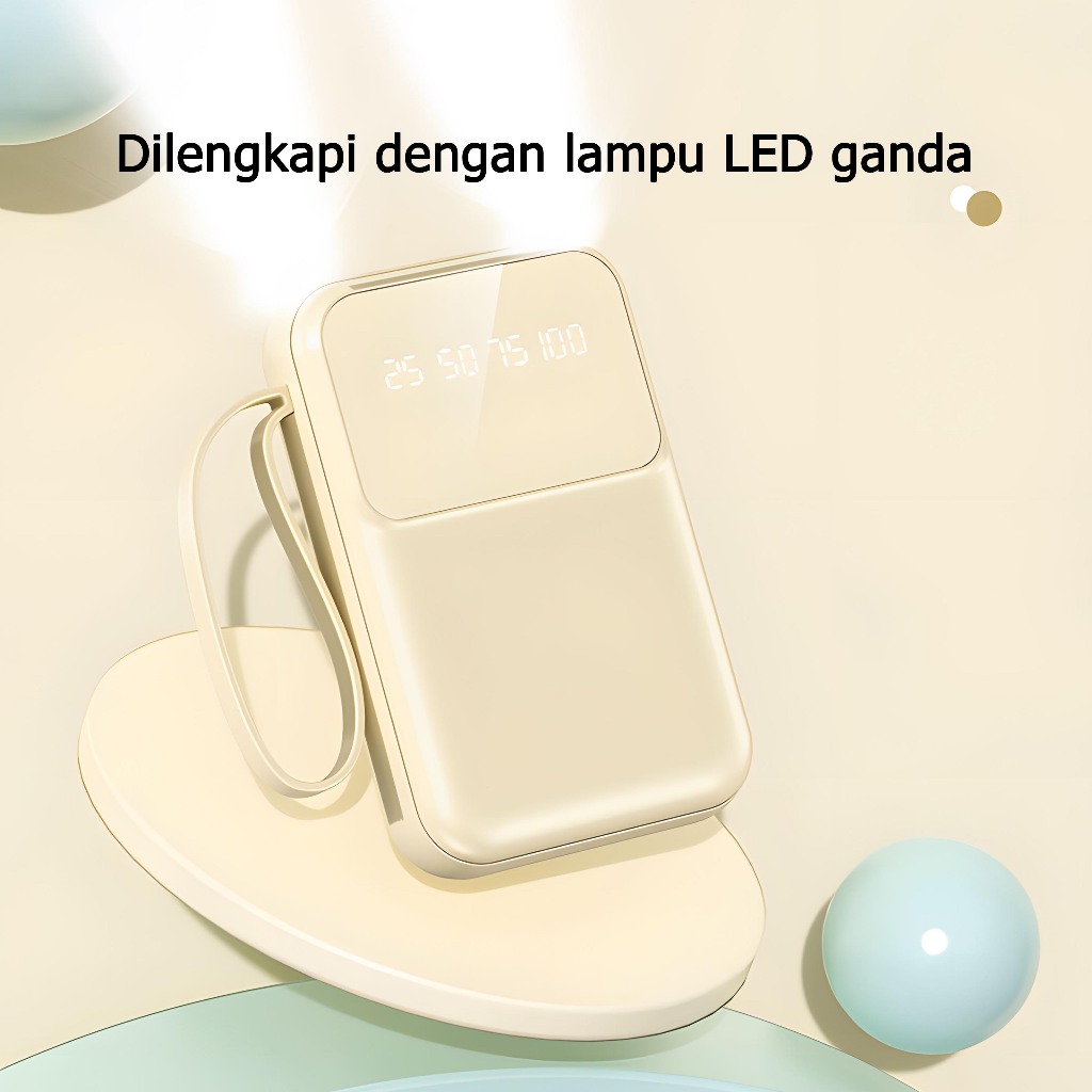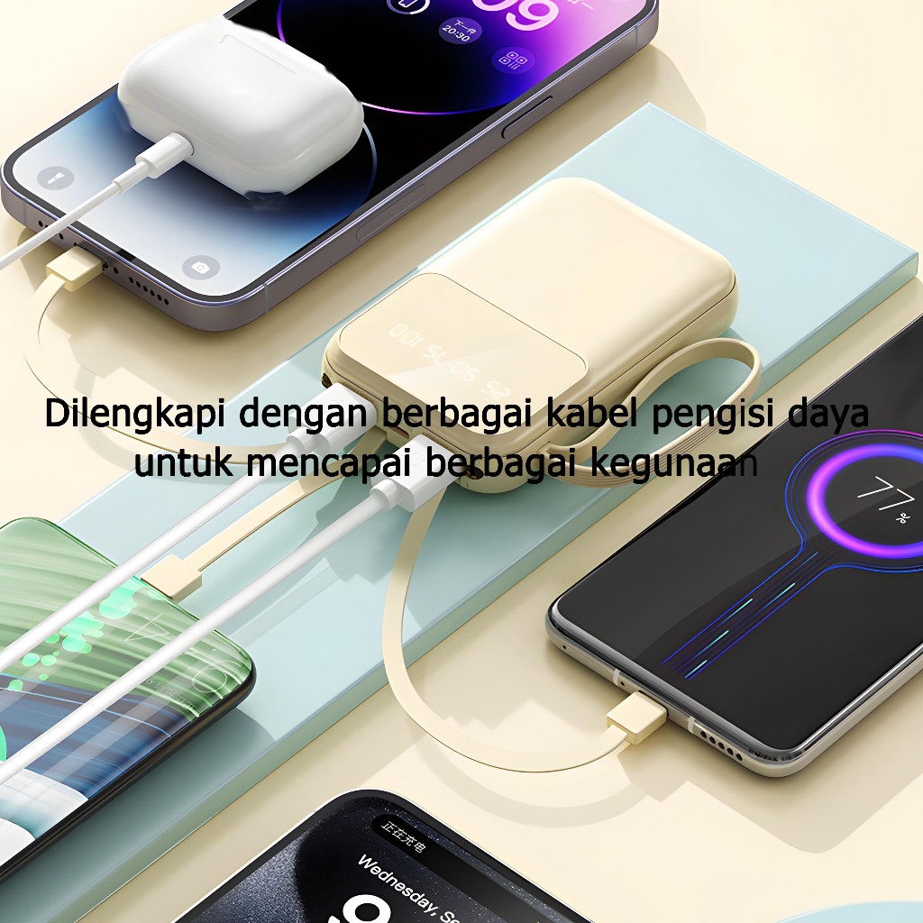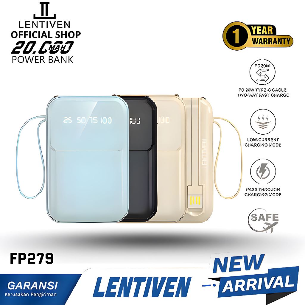 LENTIVEN Powerbank 20000 mAh Mini with 4 Kabel Data Type C Micro USB Fast Charging LED Senter Display FP279