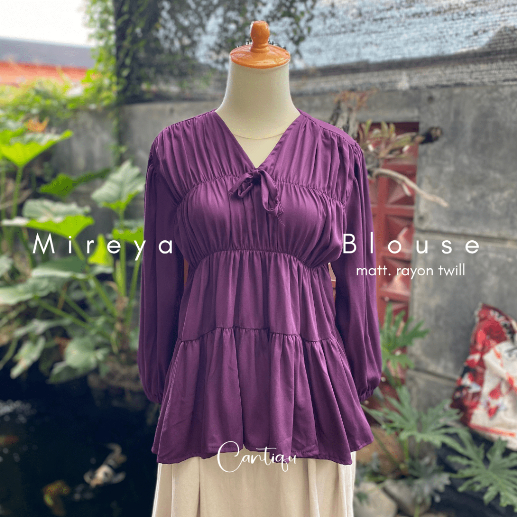 Mireya Blouse Kerut Rayon Atasan Wanita Polos Warna Lengan Panjang Terbaru Kekinian Terlaris