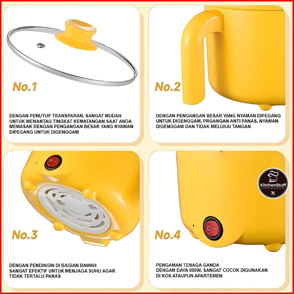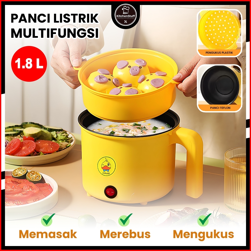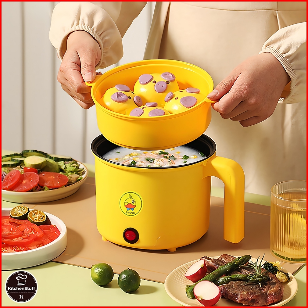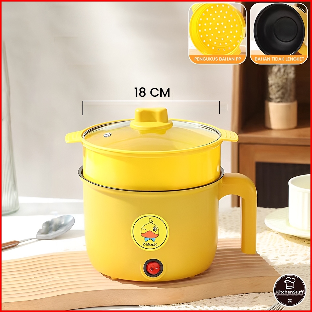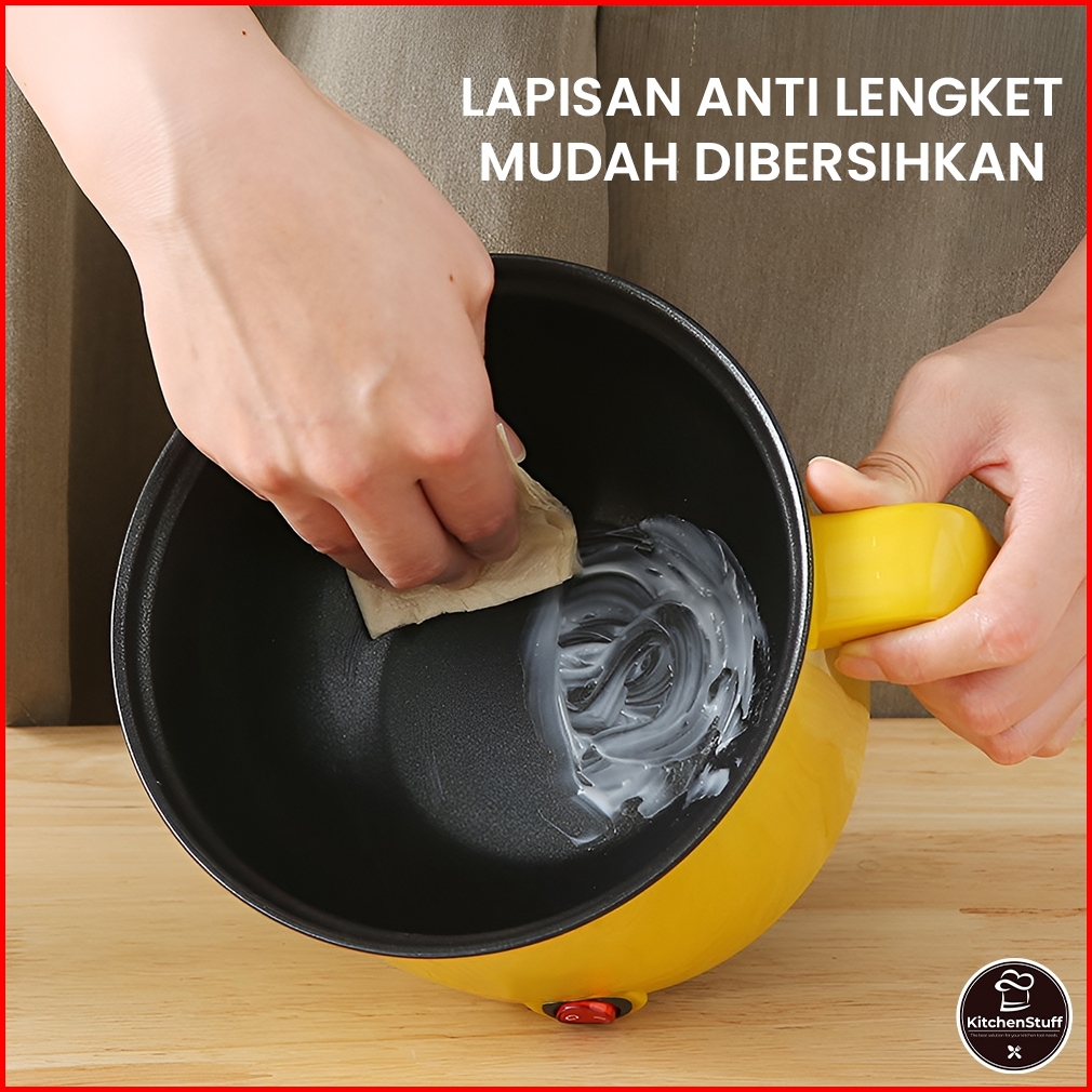 Panci Listrik 450w Dengan Pengukus - Diameter 18cm - Teflon Anti Lengket Kitchen Stuff