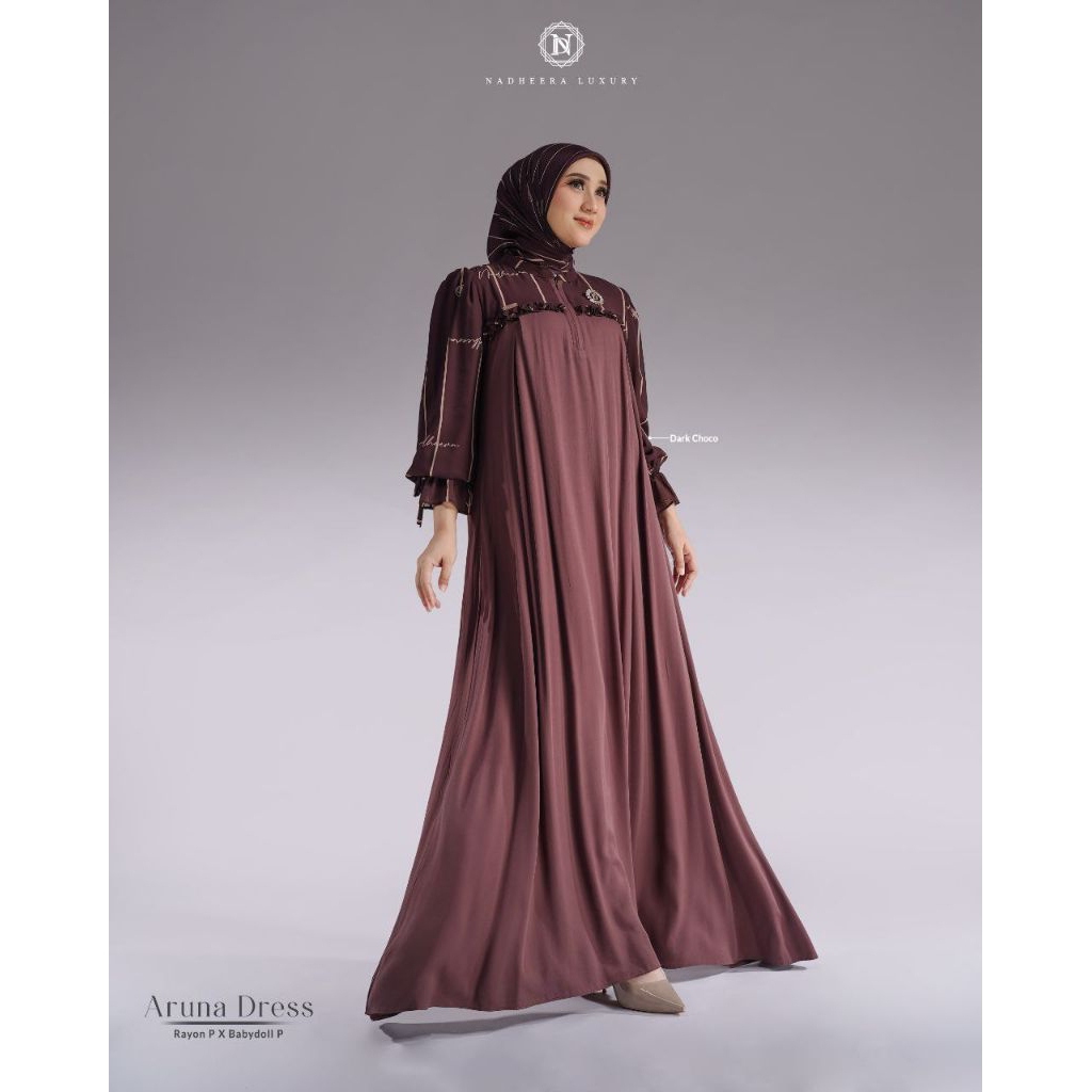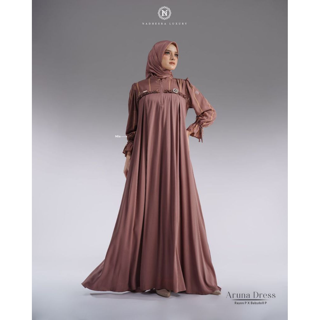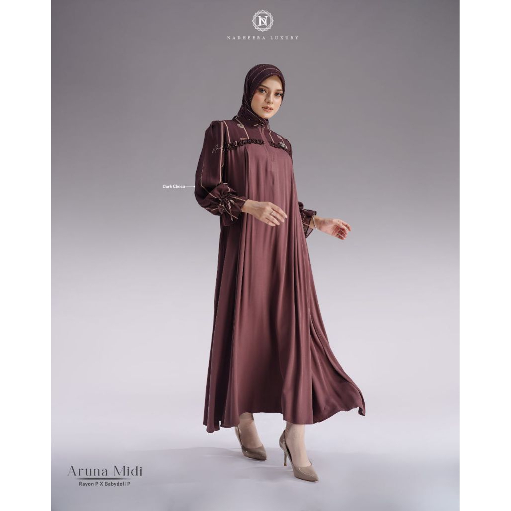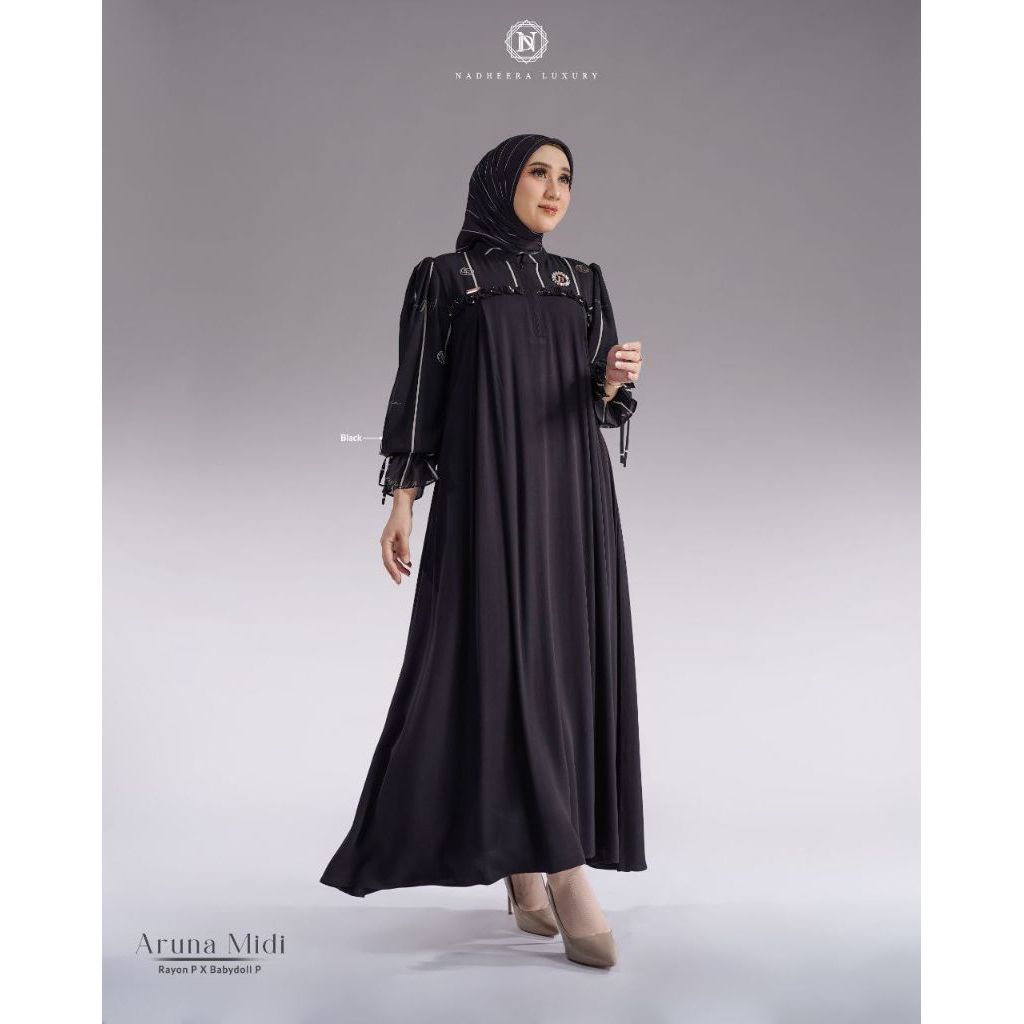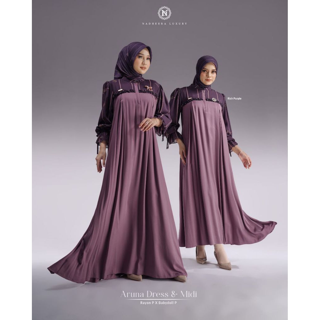 ARUNA DRESS & MIDI SERIES ORIGINAL NADHEERA LUXURY ✅ BISA ✅ gamis rayon lebaran kondangan aluna auna aranu