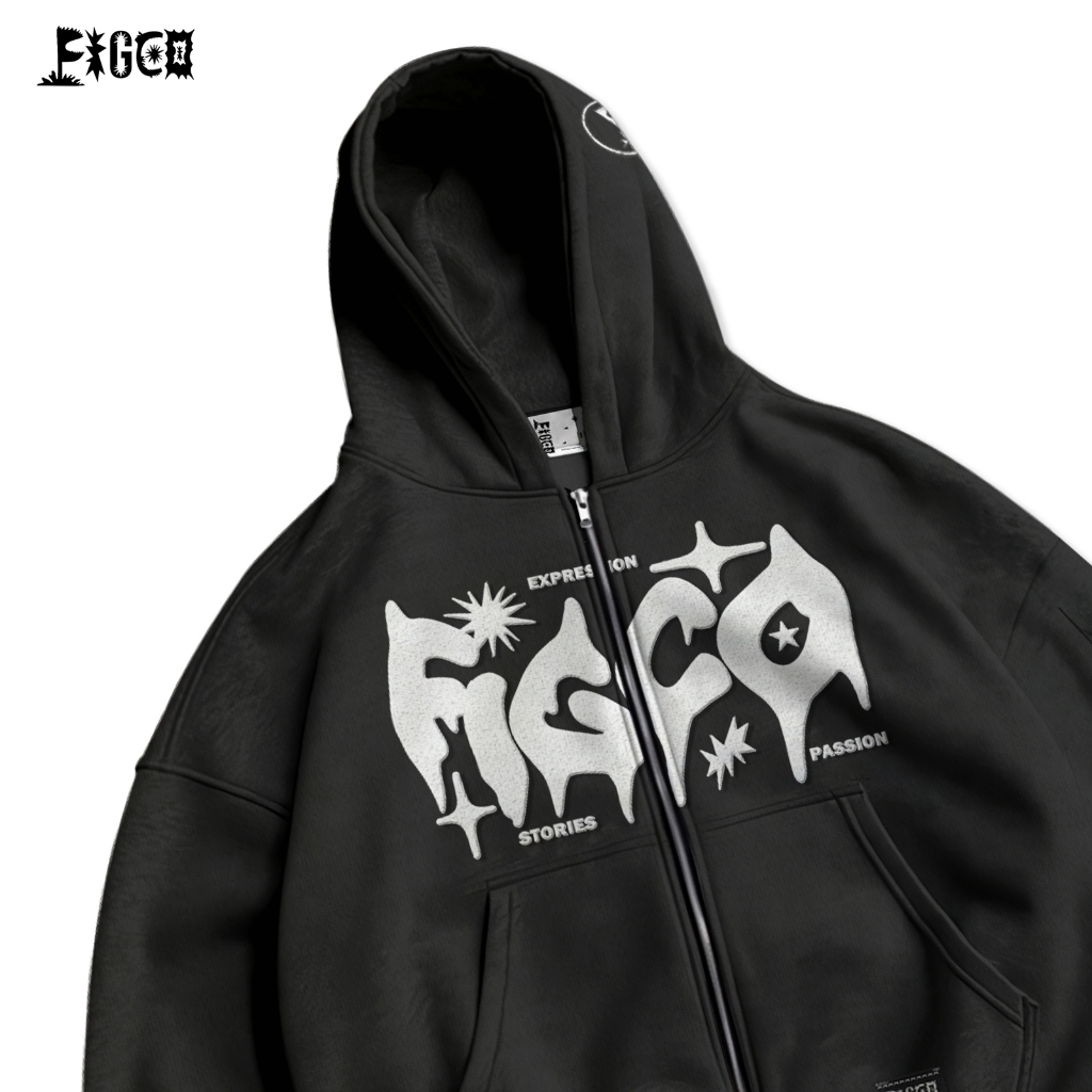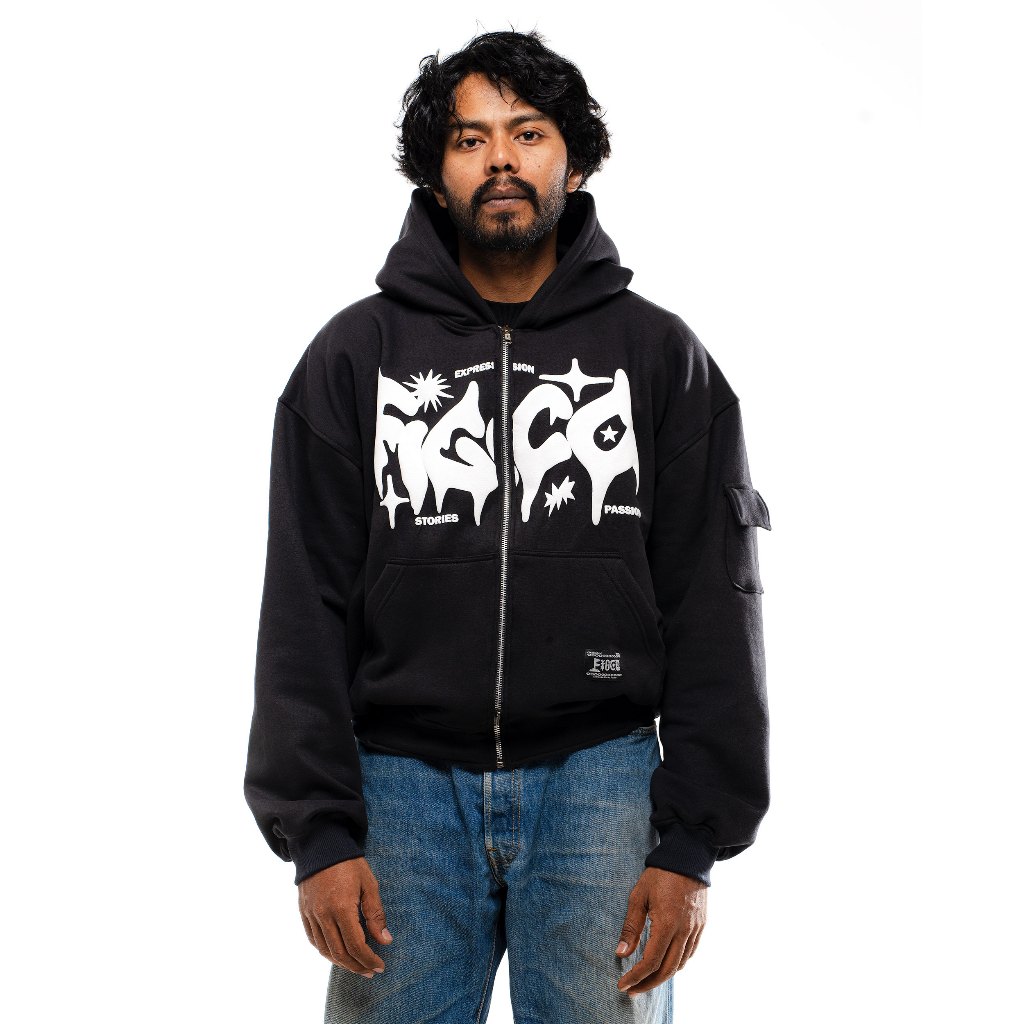 Hoodie Boxy Zipper Pocket Hitam Aura Black