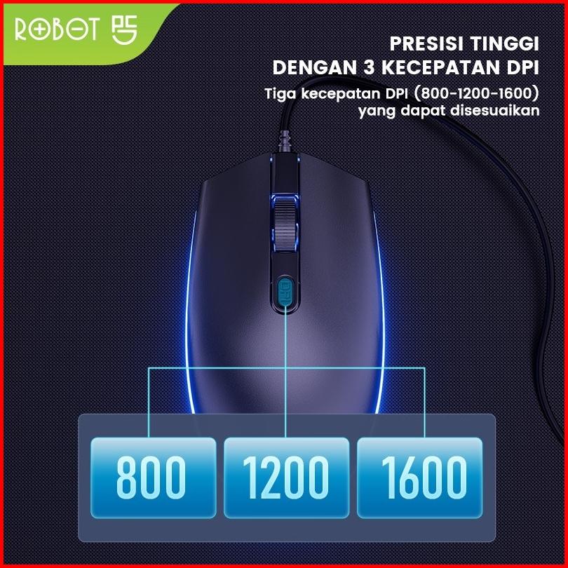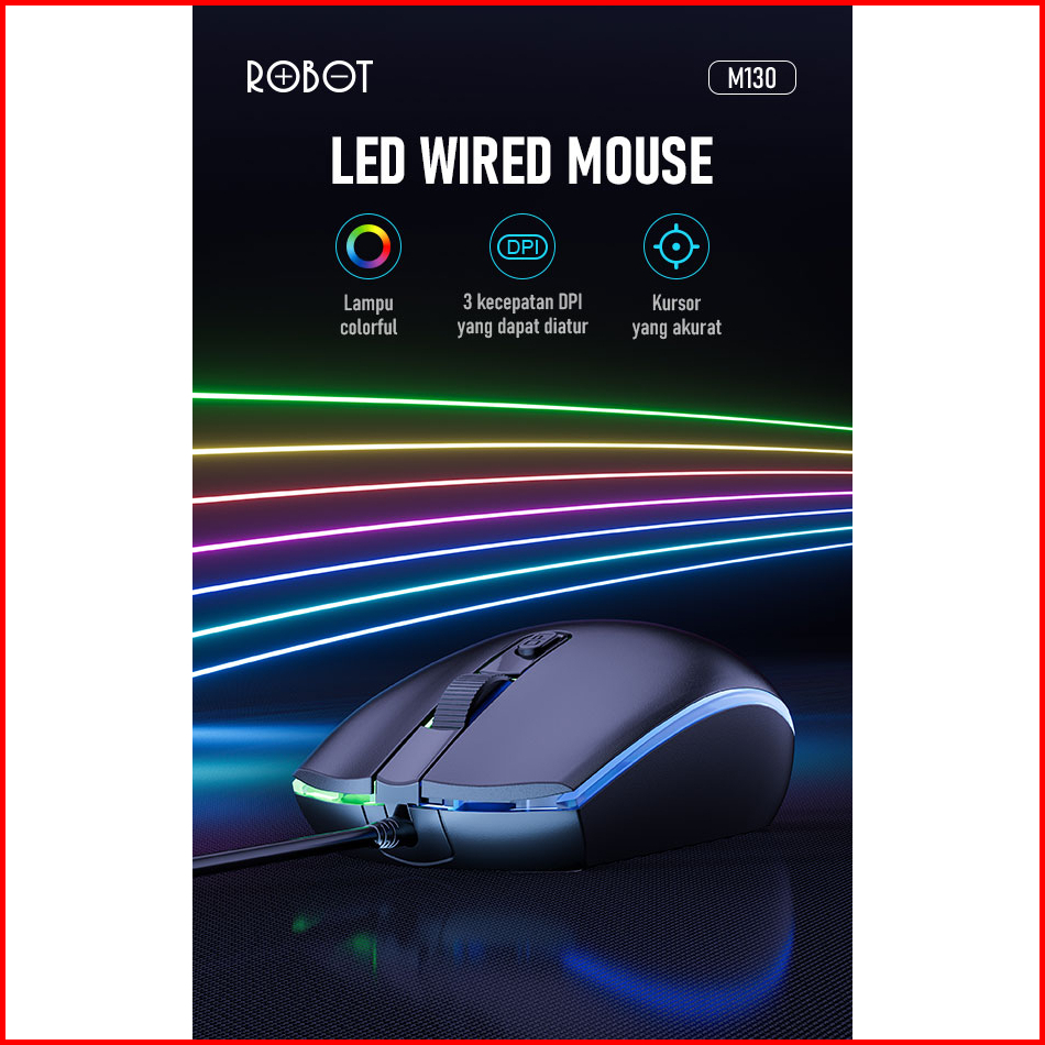 Robot M130 Mouse Wired Colorful Led 3 Kecepatan Dpi