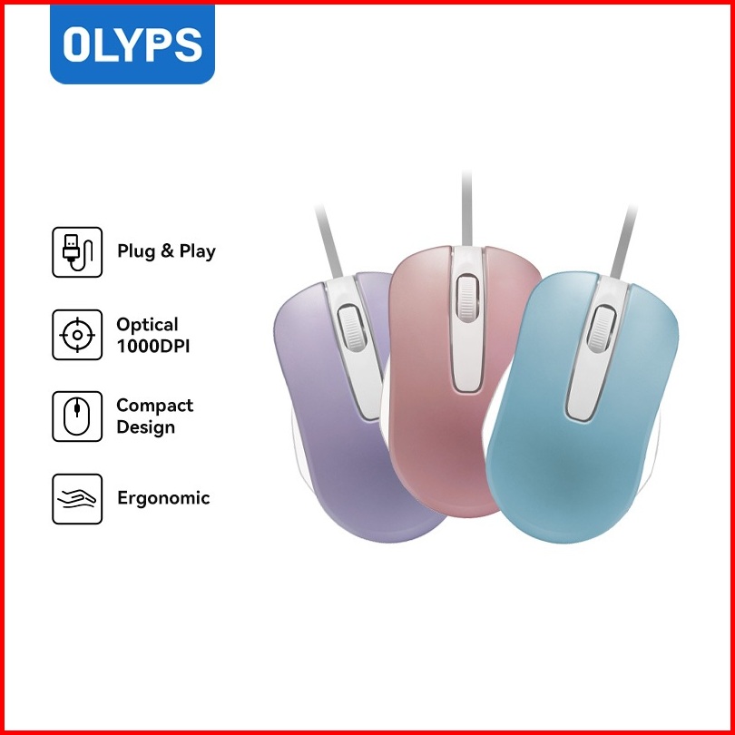 Olyps Mouse Kabel Usb Portable Mini Optical 1000dpi Office Mouse Macaron Untuk Pc Laptop