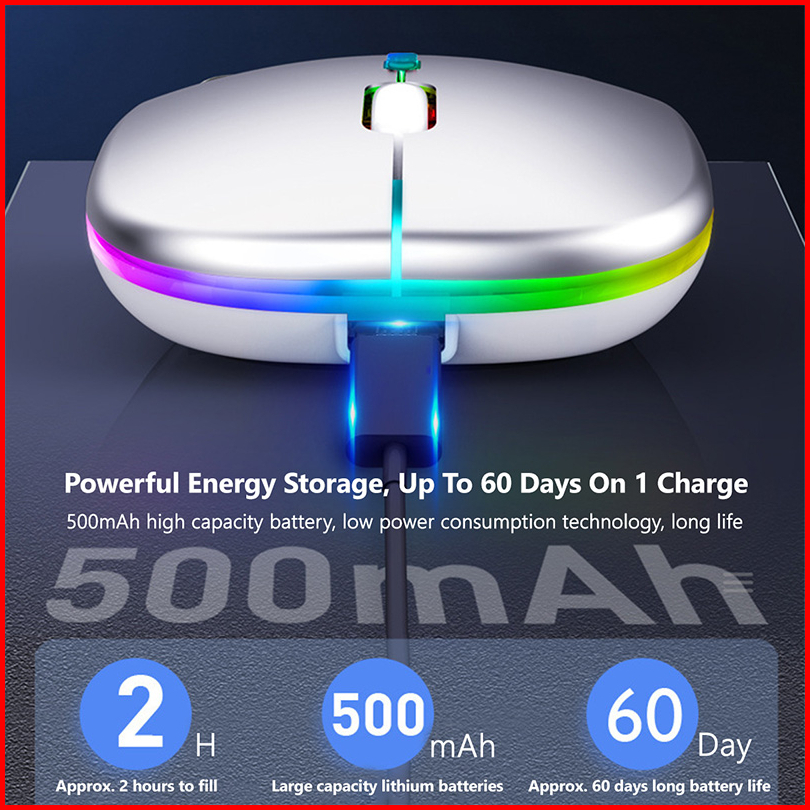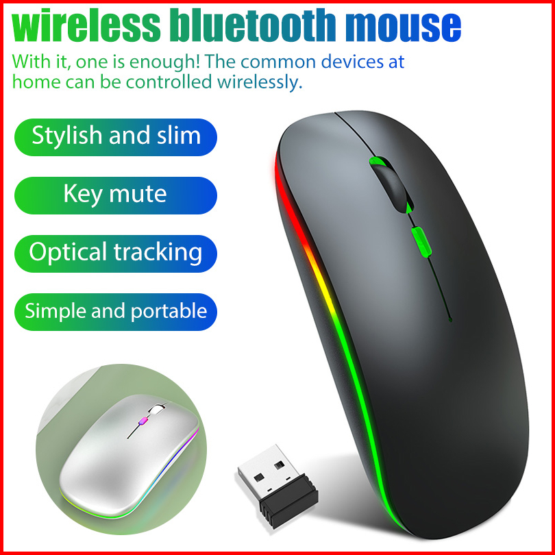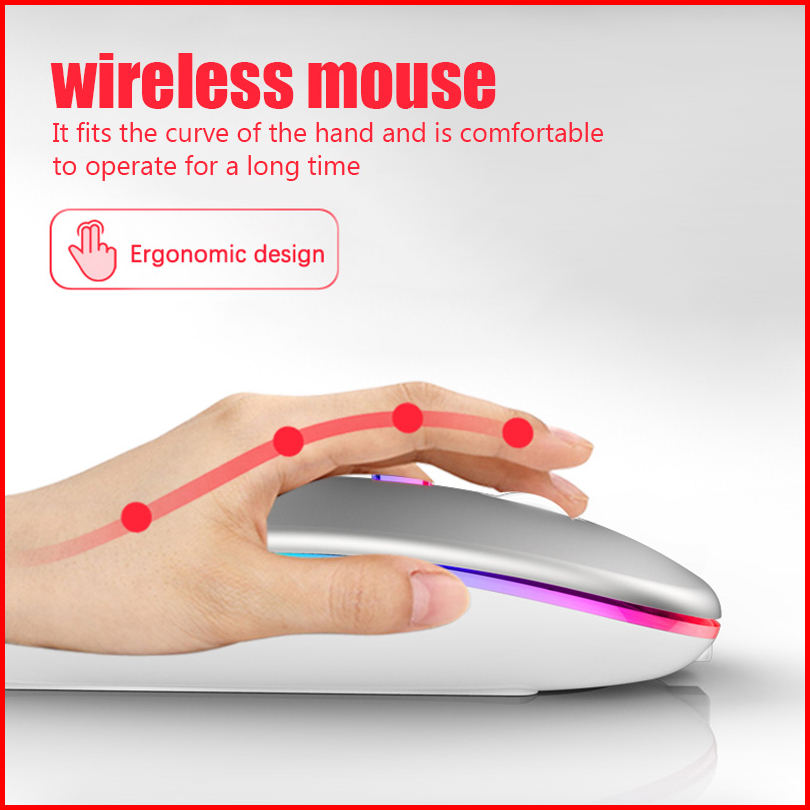 Mouse Wireless Rechargeable Silent Click Slim 2.4g Wireless Bluetooth 1600 Dpi Rgb Led Mouse Gaming Wireless Silent Clic