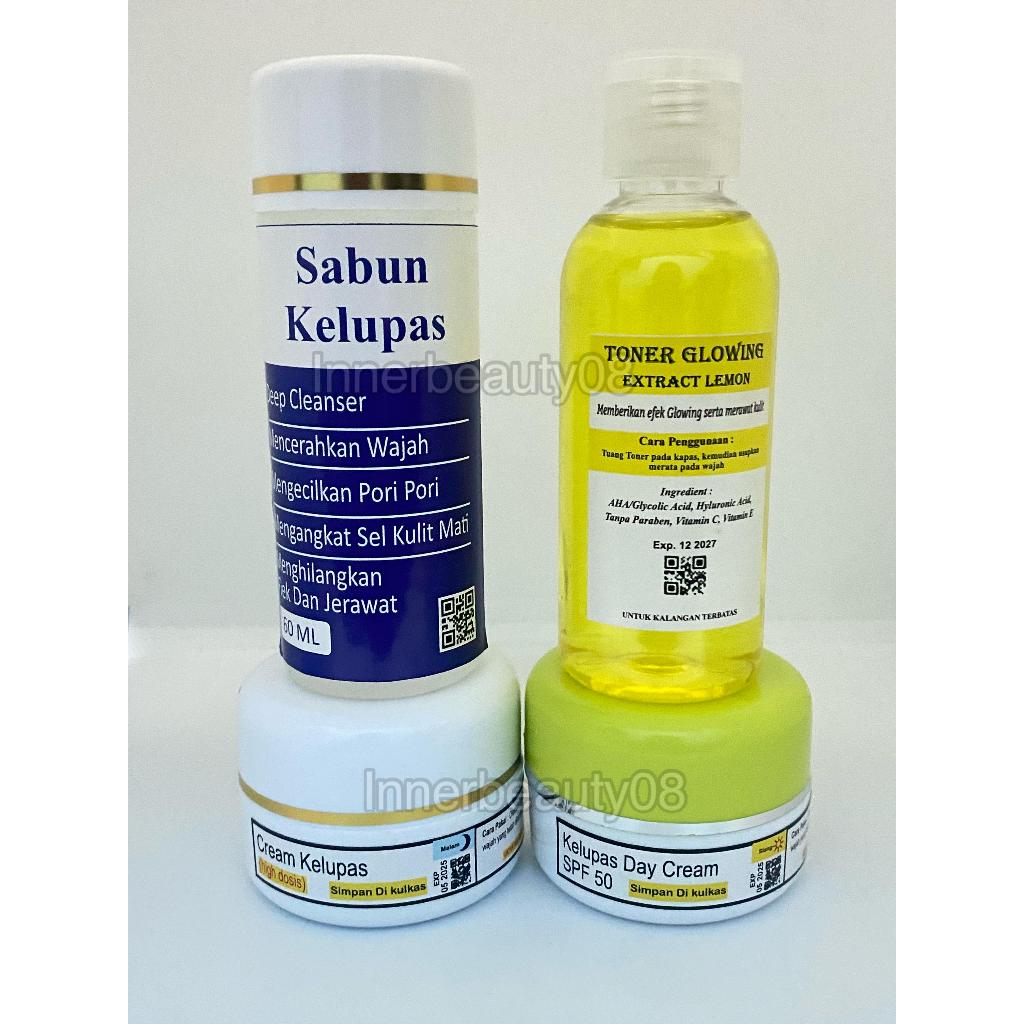 skincare wanita PAKET KINCLONG 4IN1 CREAM KELUPAS TONER DAN SABUN skincare wanita glowing bpom