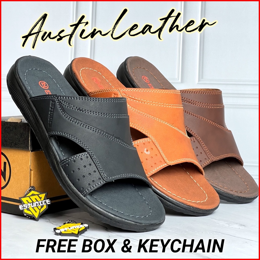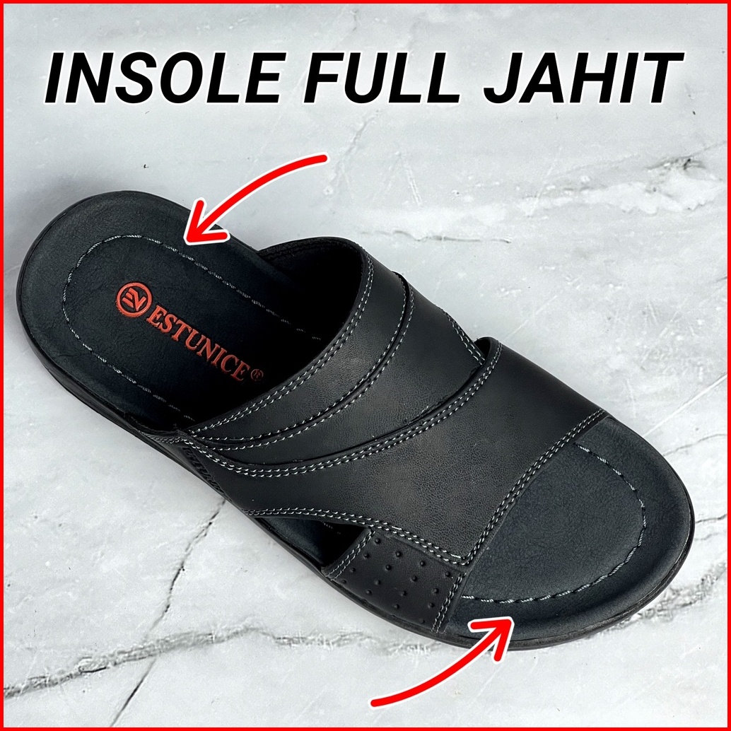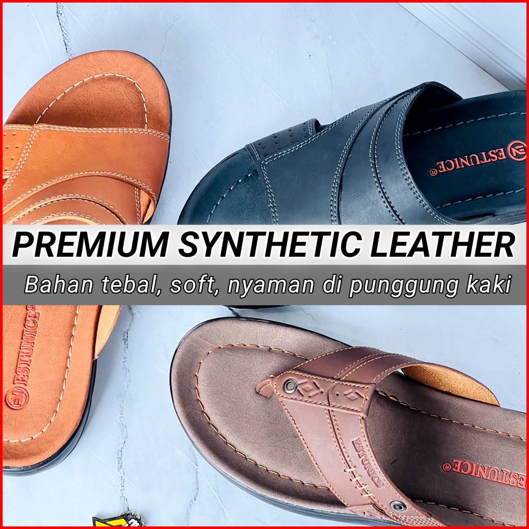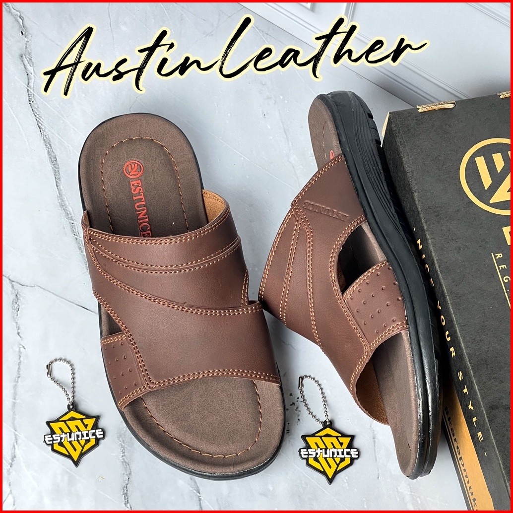 Estunice Sandal Pria Kulit Sendal Slop Selop Slip On Slide Pria - Hylos Slop Coklat