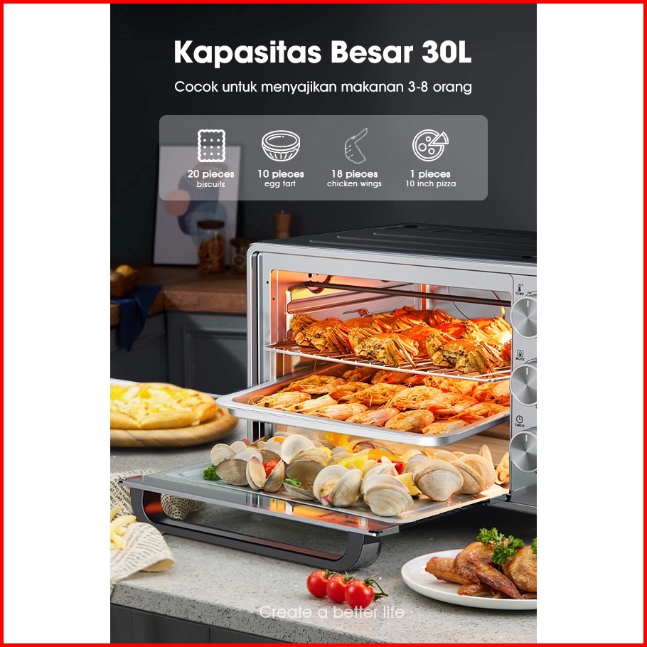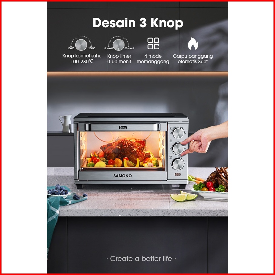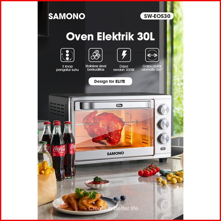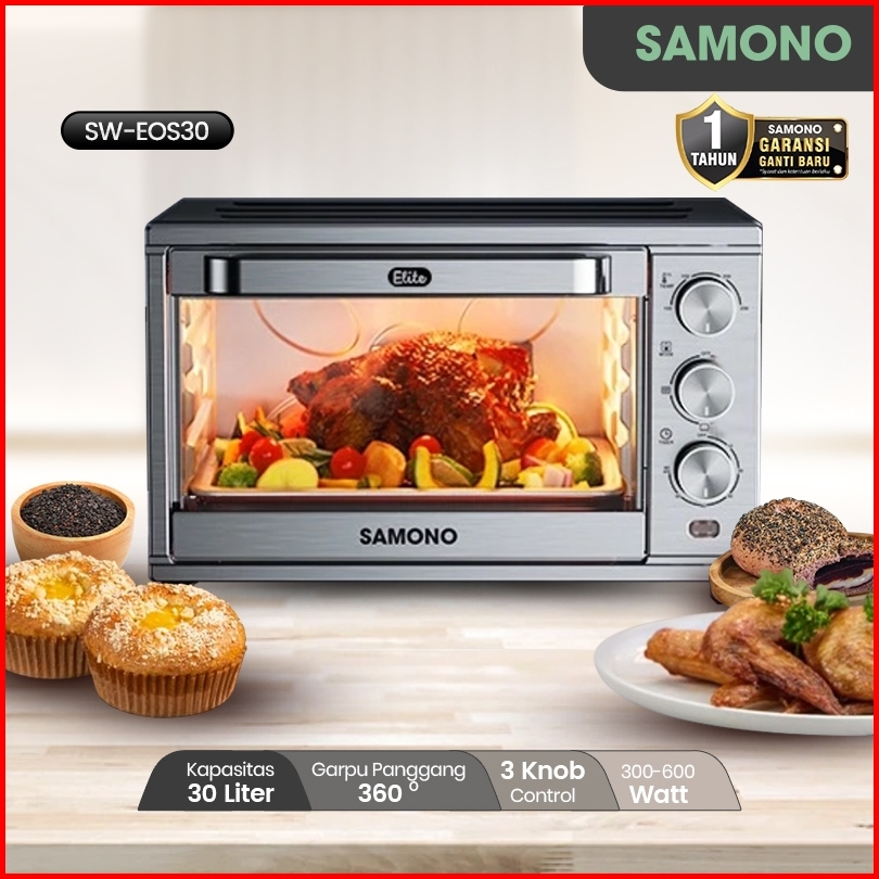 Samono Oven Listrik Low Watt 30 Liter Stainless Silver Pemanggang Serbaguna Sw-eos30