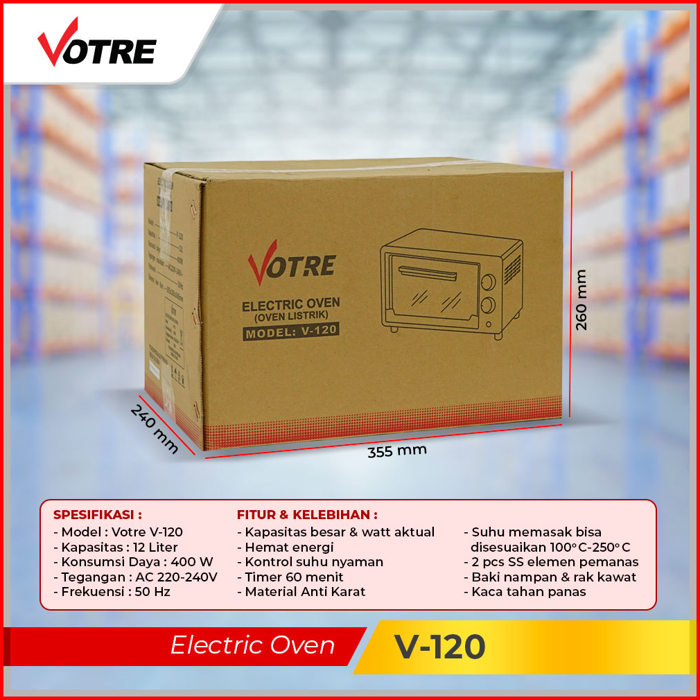 Votre V-120 Oven Listrik Murah 12 Liter 2 Element 400watt By Advance Digitals