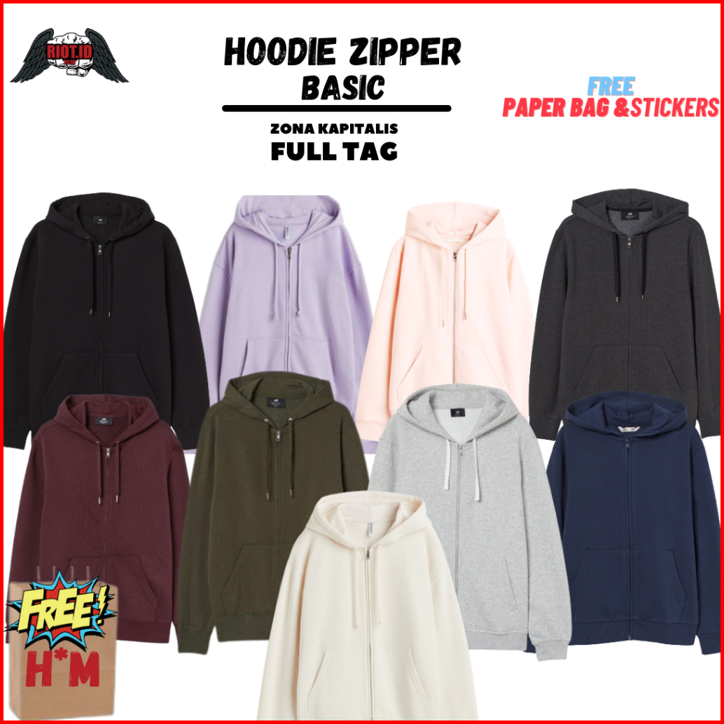 Hoodie Hm Zipper Basic Polos Black Navy Grey Dark Grey Maroon Army Cream Pink Full Tag Unisex